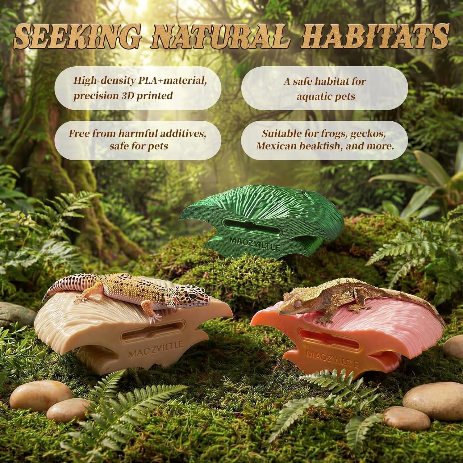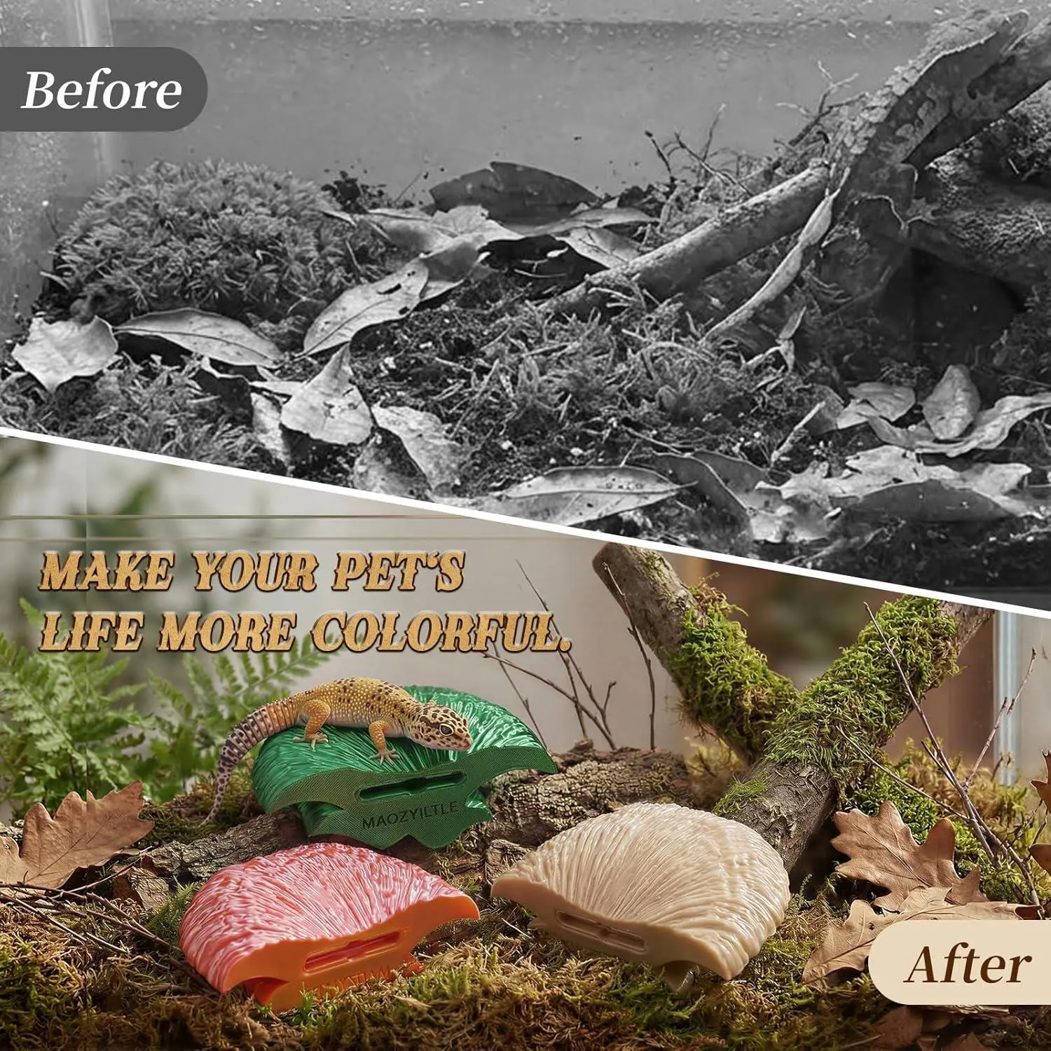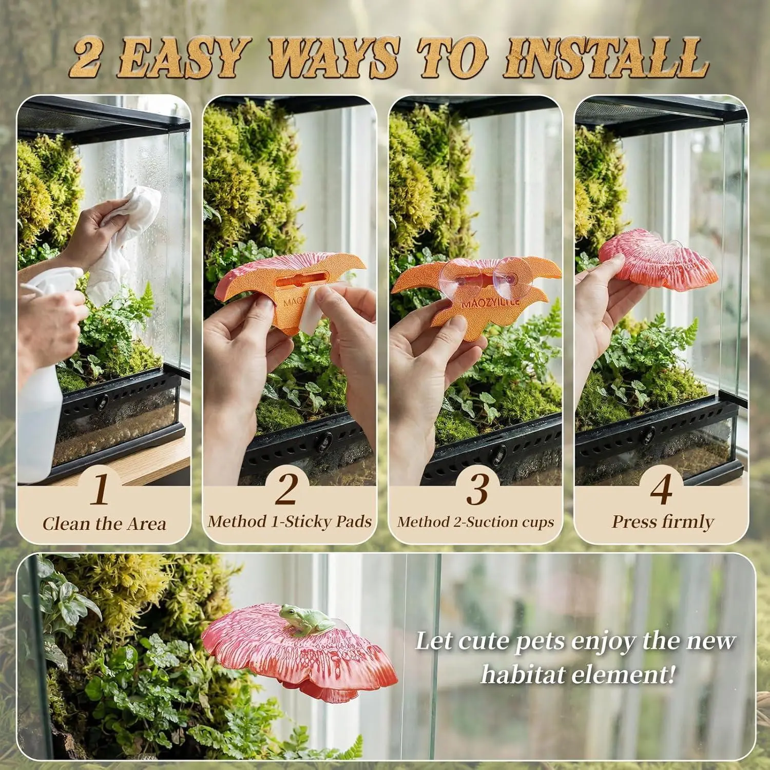 Mushroom Reptile Ledge| Tree Frog Terrarium Tank Accessories, Crested Gecko Tank Accessories, Frog Habitats, Fish Tank Decor, Axolotl Hides| Terrarium Plants Decor| Pet-Safe | 4 Suction Cups (Beige)