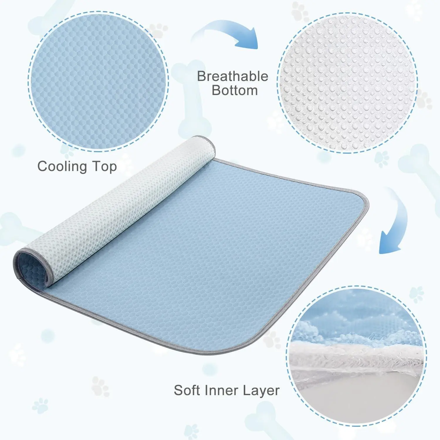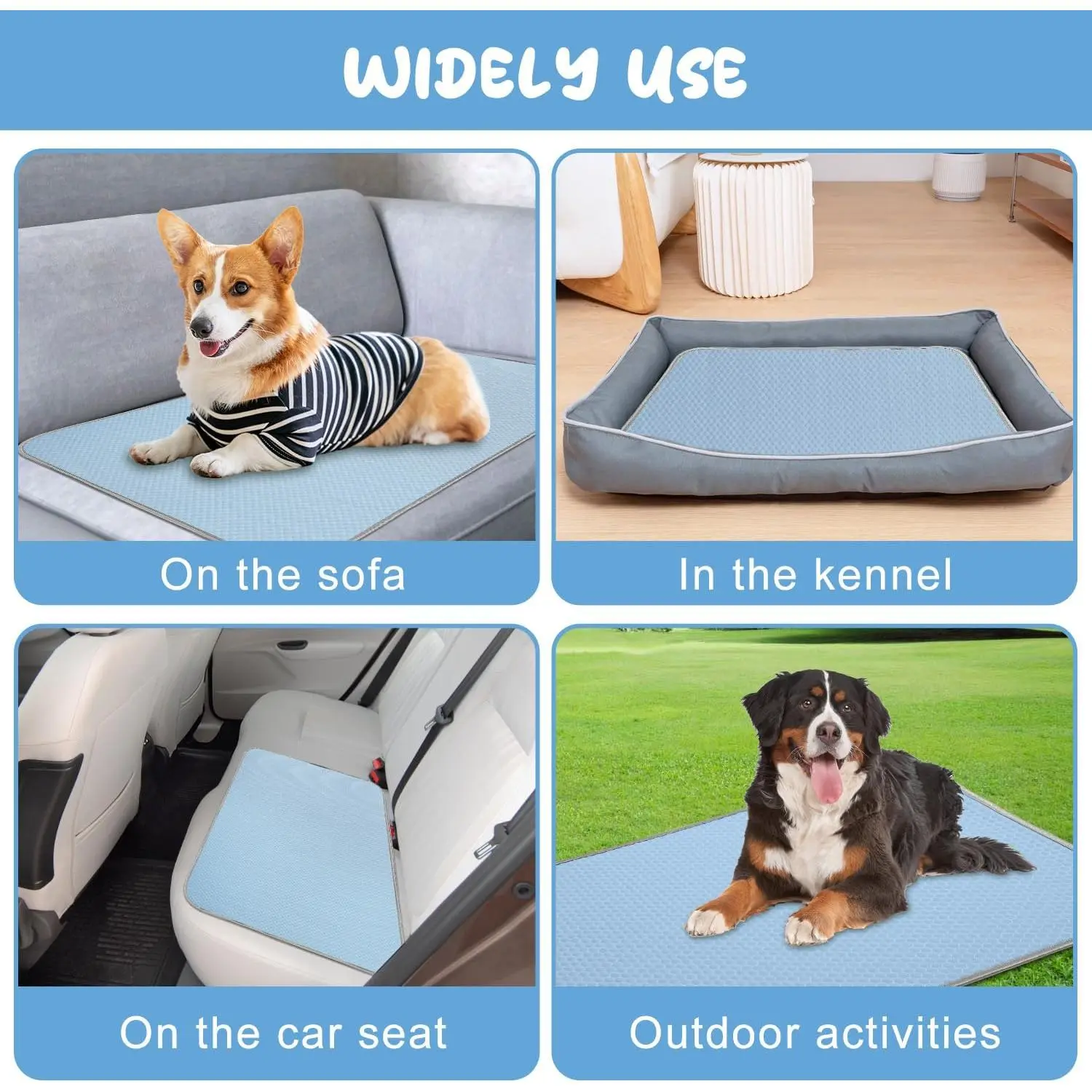 Summer Dog Cooling Mat Washable Ice Silk Self Cool Pad for Small Medium Large Dogs and Cats, Pet Sleeping Pad for Crate, Bed, Indoor & Outdoor Floor, Car Seats