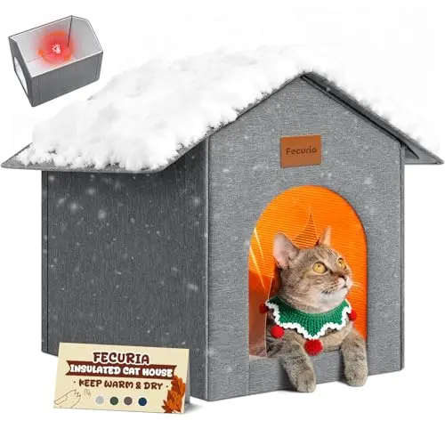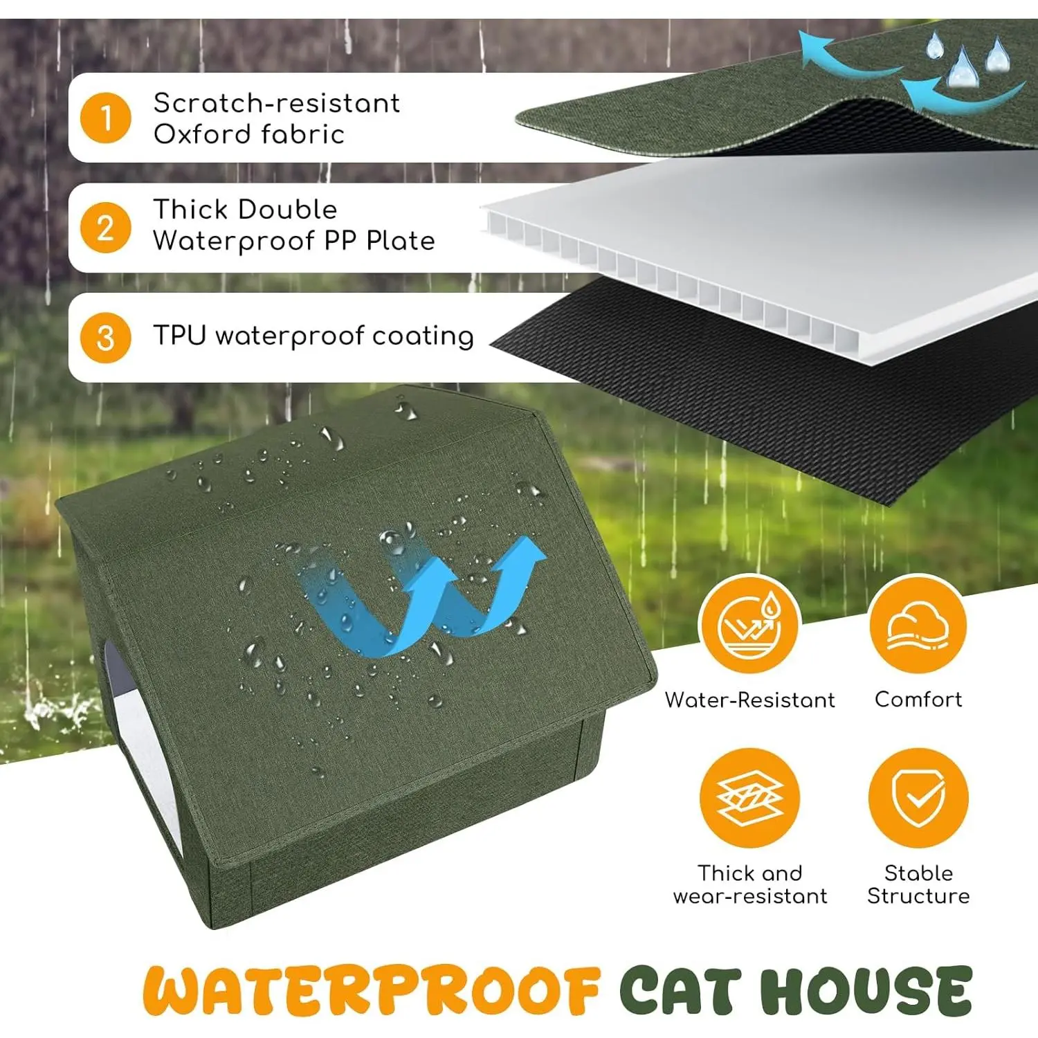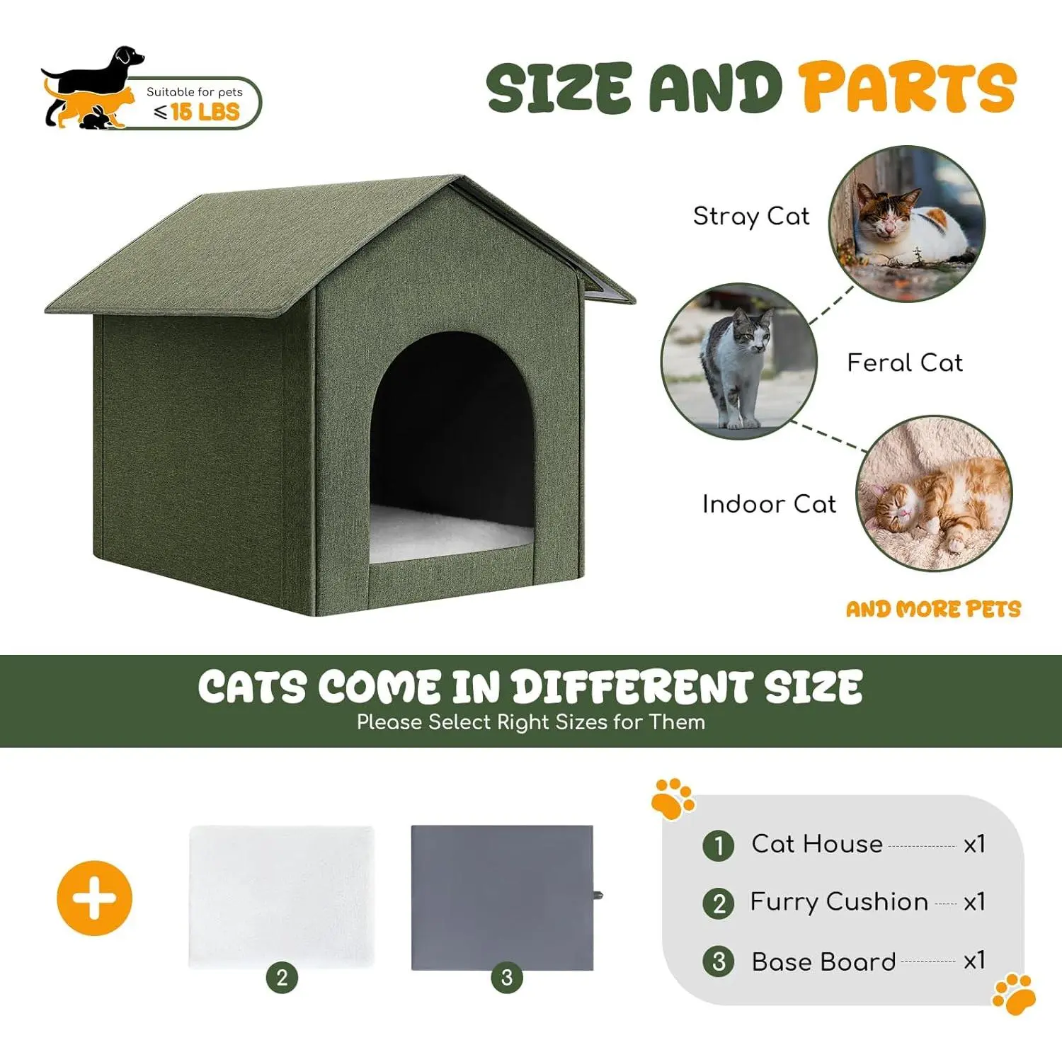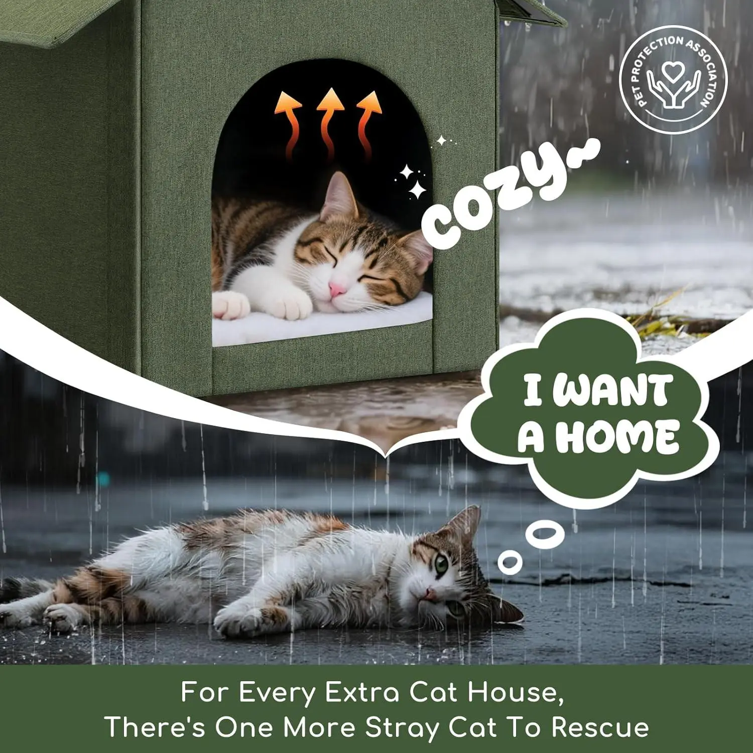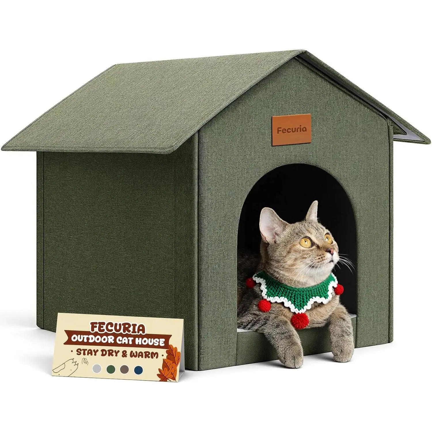 Outdoor Cat House Weatherproof, Insulated Cat Dog Houses for Outdoor/Indoor Cats for Winter, Waterproof Feral Stray Cat Shelter with Warm Cushion for All Seasons, Easy to Assemble, Olive Green