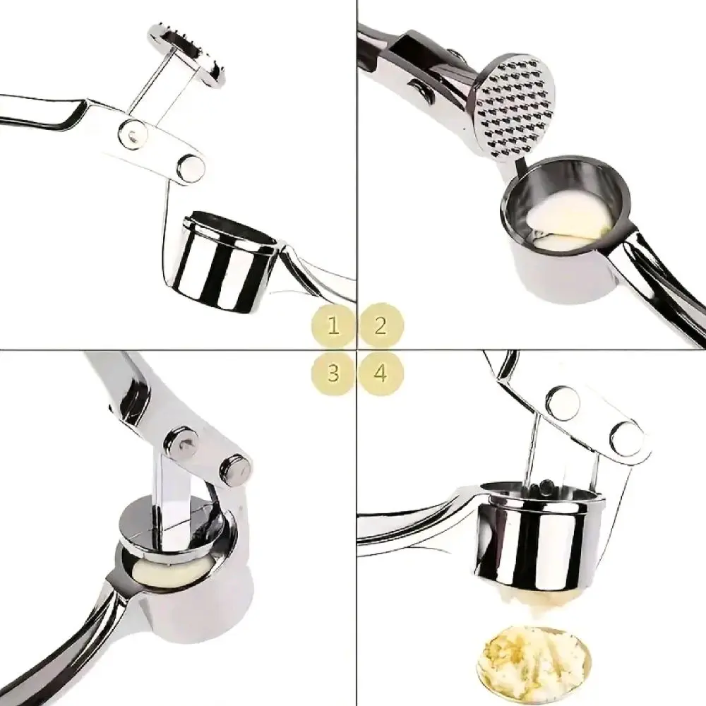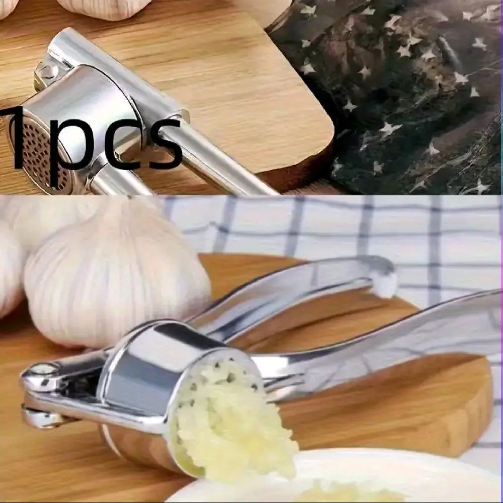 Crafted from stainless steel, this garlic mincer is built to last. The stud adds stability during use. It's a reliable tool for all your garlic needs. Whether for puree or minced garlic, this press delivers consistent results. Upgrade your kitchen tools with this heavy-duty garlic press.