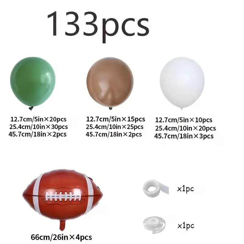 Make your sports-themed party unforgettable with our 133-piece soccer balloon garland arch kit, designed in trendy sage green and rich coffee brown to create a stylish and energetic backdrop for your game day celebration. This complete set includes everything you need to build a stunning balloon arch or garland, perfect for football and soccer theme parties, touchdown events, birthday bashes, sports banquets, school competitions, and outdoor game day gatherings.