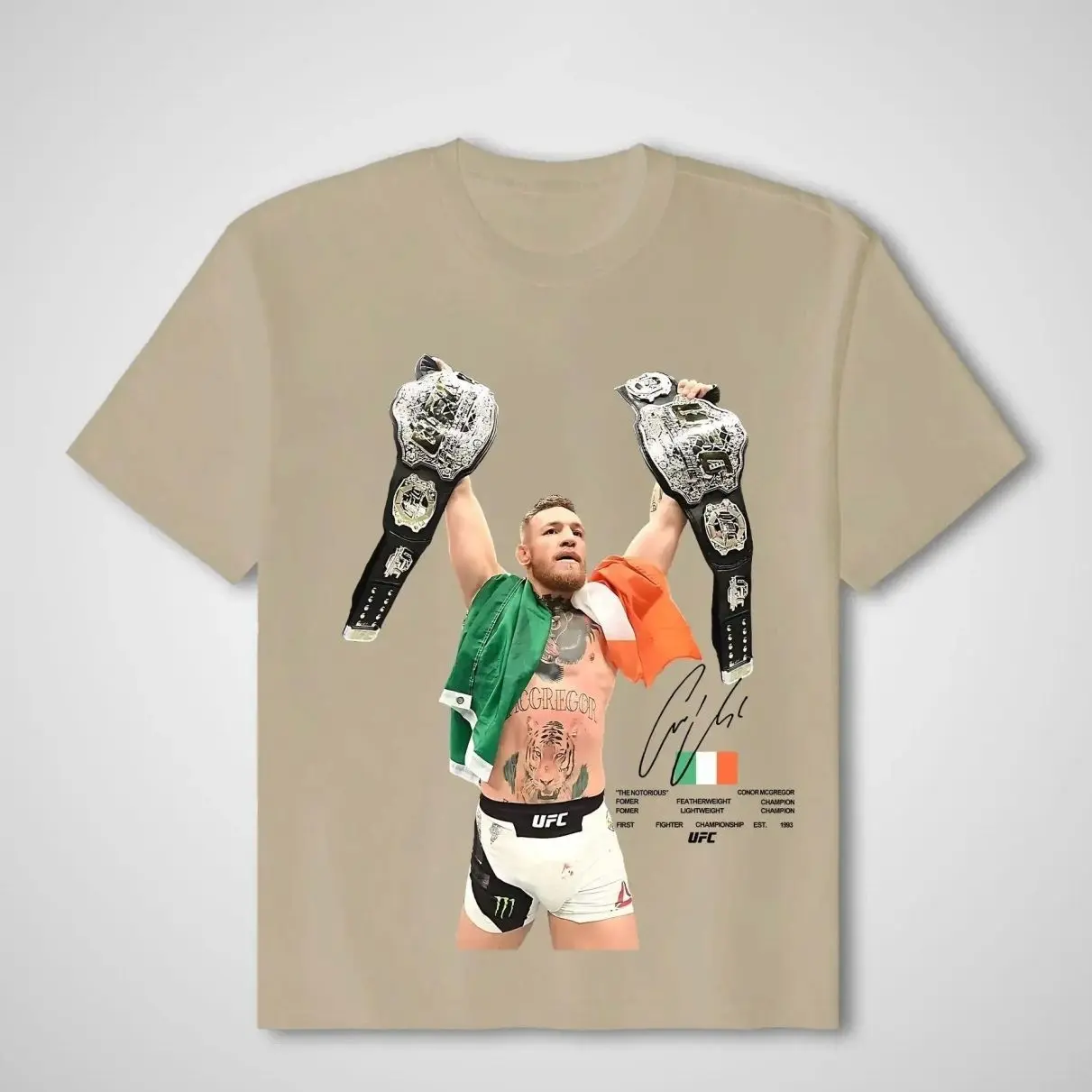 UFC Conor McGregor Double Belted Oversized Tee, Conor McGregor UFC Shirt, McGregor Tee, UFC Fans Shirt, UFC Tee, Gift For Him For Her Fighters Menswear Cotton Crewneck Clothes HL9