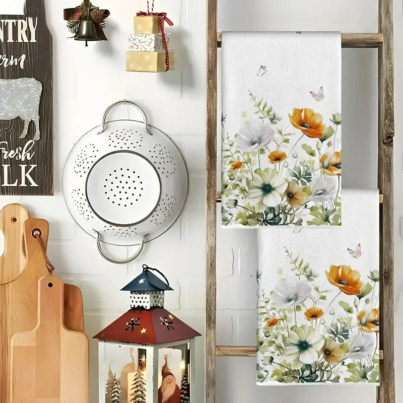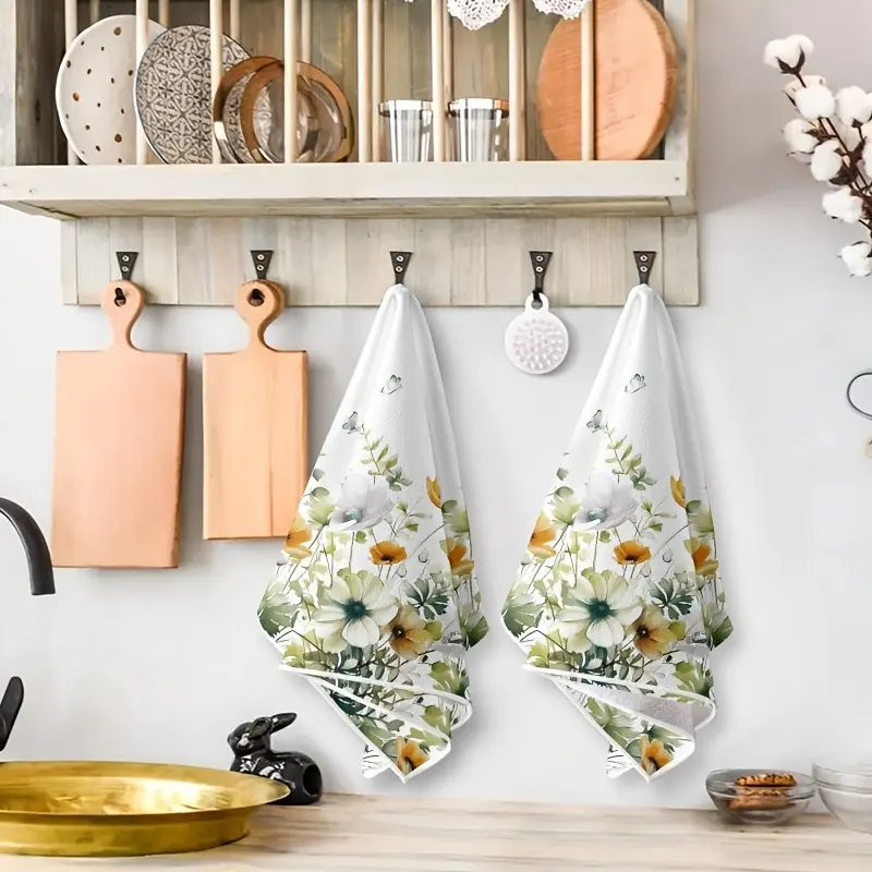 2pcs 23.6x15.7 In Cleaning Cloth Kitchen Towel Spring Green Floral Pattern Kitchen Towels Polyester Tea Towels Dishwashing Towels Birthday Gift Kitchen And Bathroom Decor Scouring Pads Machine Washable