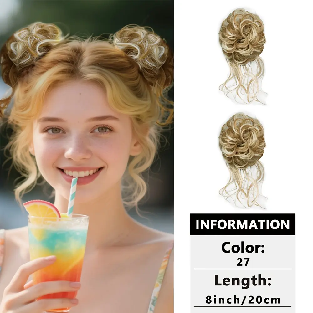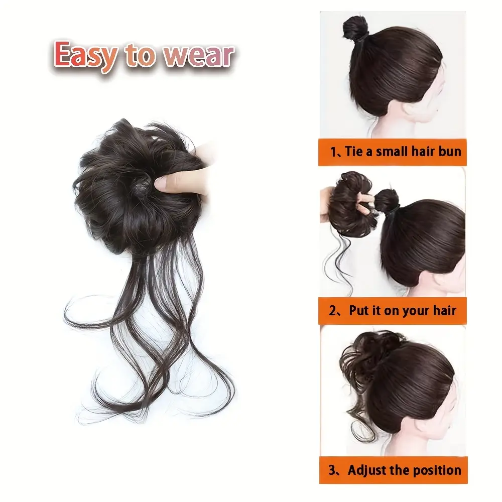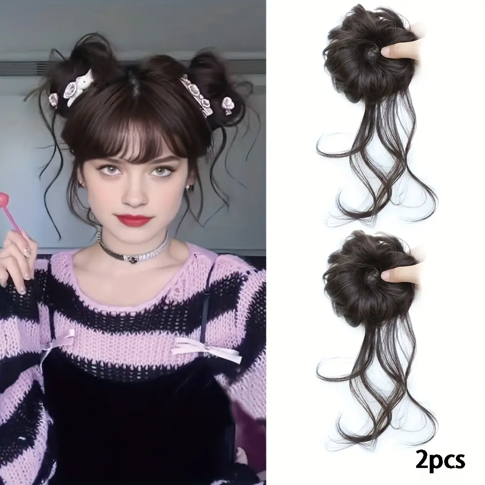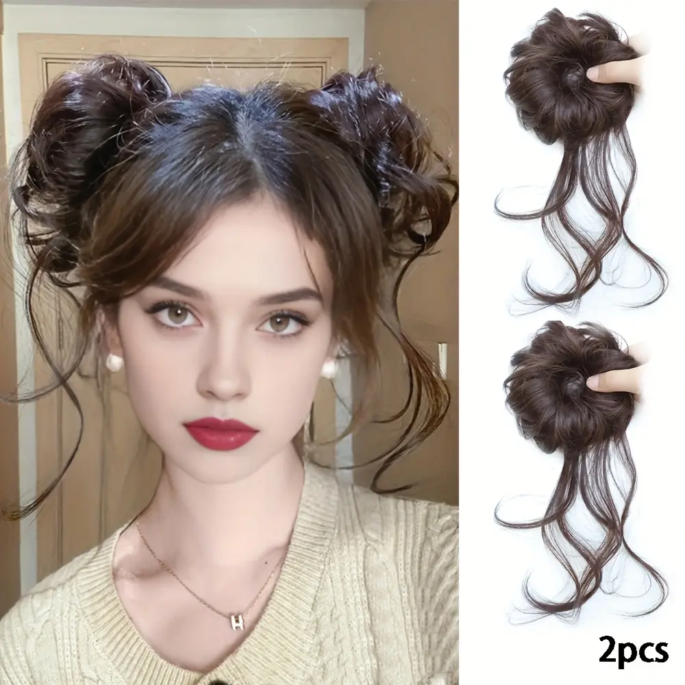 2 pieces of women's messy long hair bun hair accessories, synthetic wavy hair wraps, easy to wear, suitable for festivals, parties, and essential for Christmas costumes