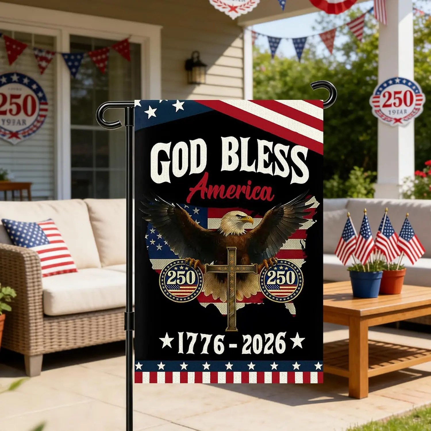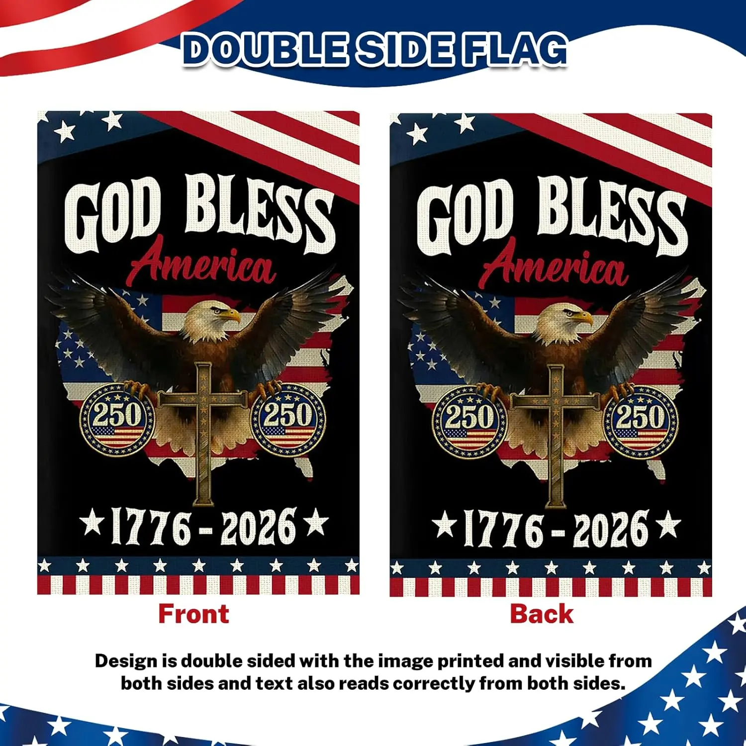 ·250TH ANNIVERSARY COMMEMORATIVE DESIGN: Celebrate a monumental moment in history with our 250 anniversary usa flag. This garden flags proudly displays the "1776-2026" years, God Bless America,honoring 250 years of American independence. It serves as a timeless america 250 flag to mark the 250 years freedom, making it a meaningful addition to your patriotic collection.