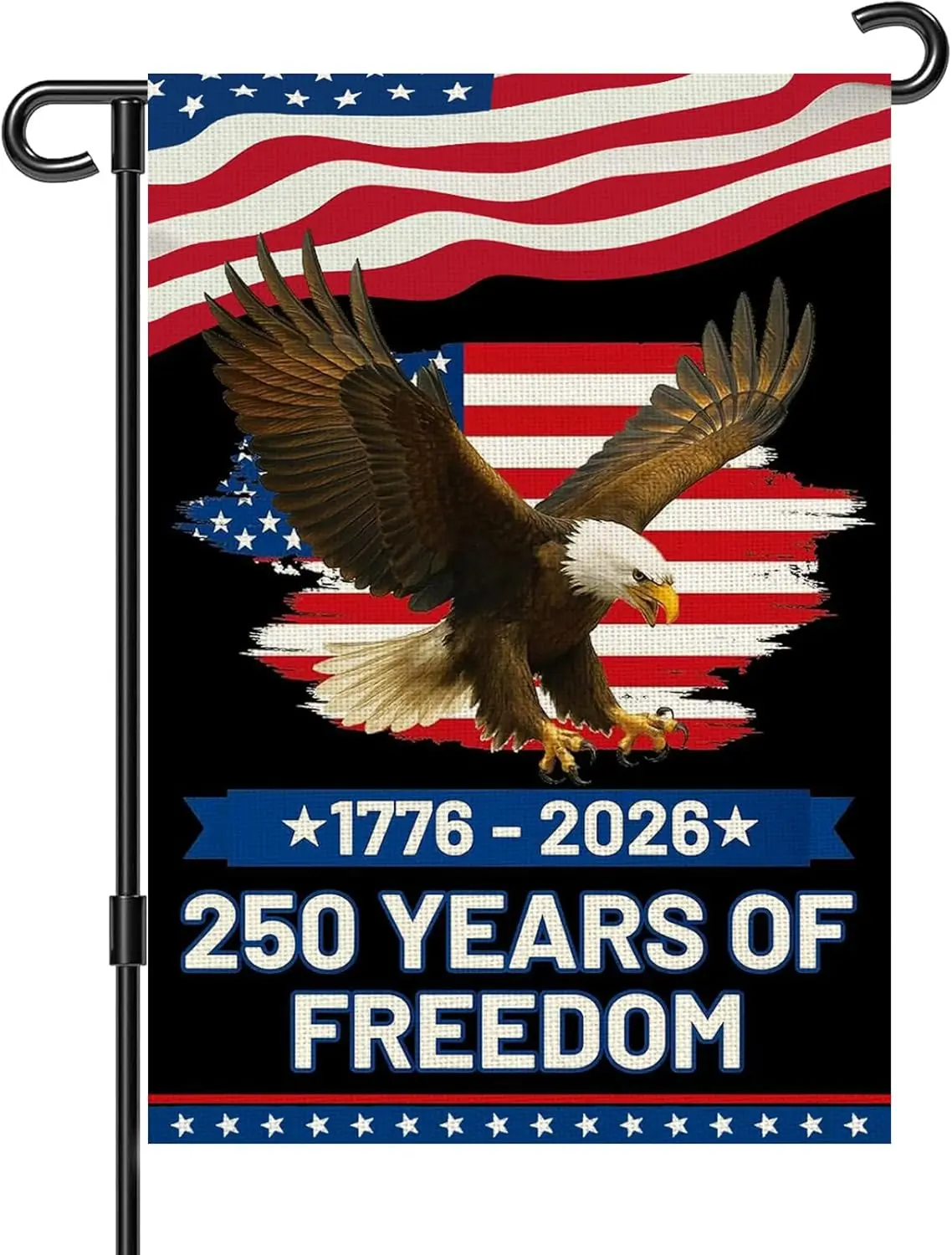 ·PREMIUM QUALITY & DOUBLE-SIDED PRINT: Crafted from durable linen, this 250 year american anniversary flag features a vivid, double-sided print. The text and eagle are readable and vibrant from both sides, ensuring your tribute to the 250th anniversary flag looks beautiful as it waves in the breeze, greeting neighbors and passersby from every angle.