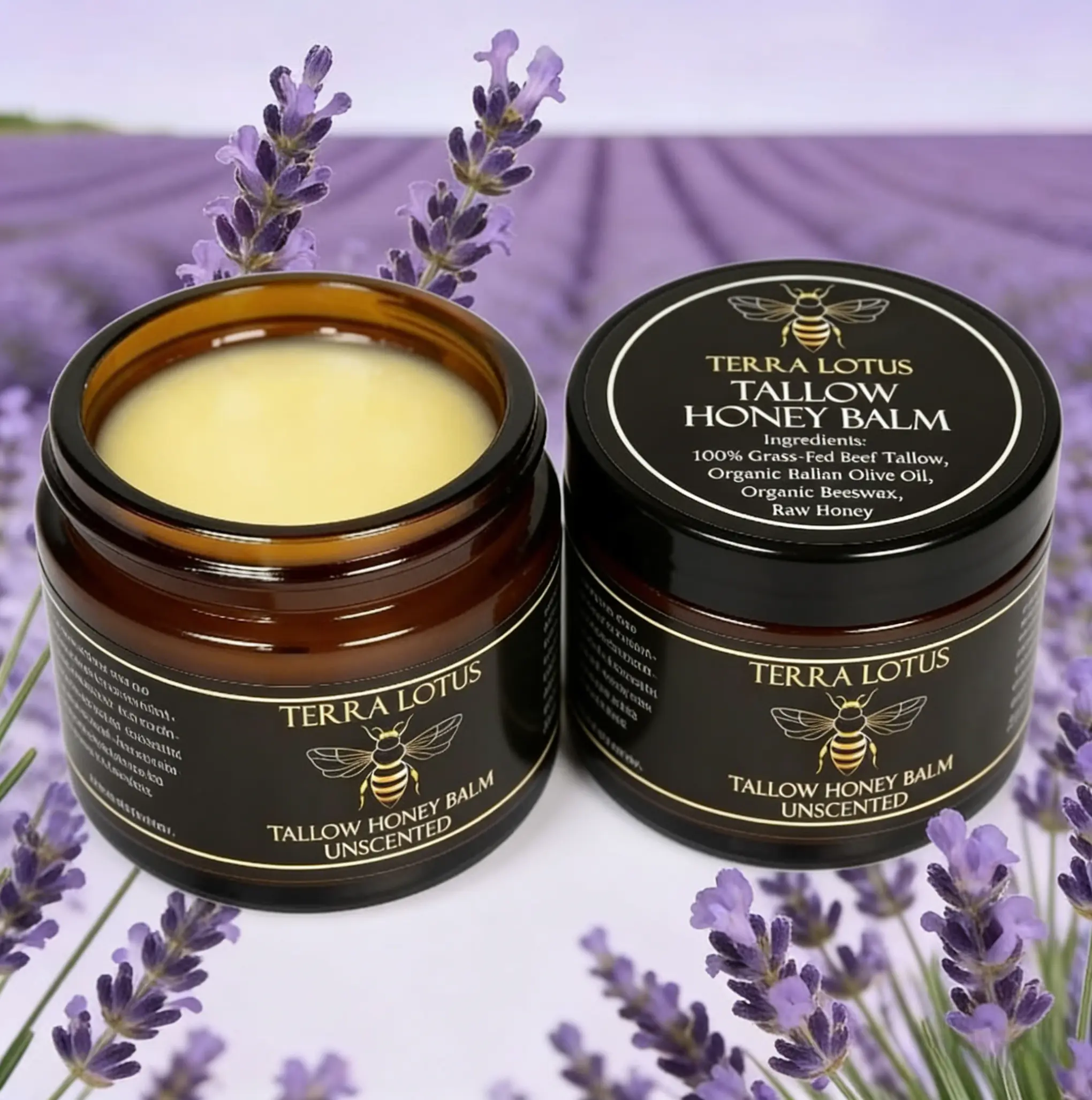Discover the ultimate skincare solution with our Organic Grass-Fed Beef Tallow Balm. Crafted with raw honey, this handmade balm is a natural moisturizer for soft, smooth, and radiant skin. Perfect for those seeking all-natural skincare, it offers a luxurious feel without compromising on quality.