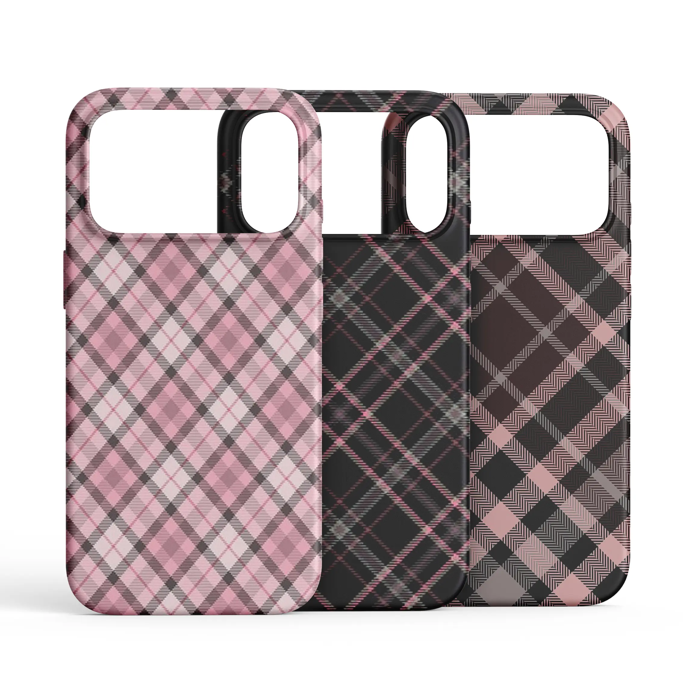 Magsafe Fashion Tartan Checkered 2-in-1 Phone Case for iPhone 17/16/15/14/13 Pro Max Pink Black Plaid Protective Case