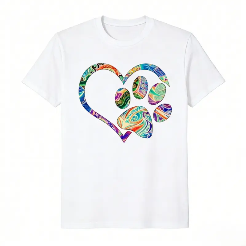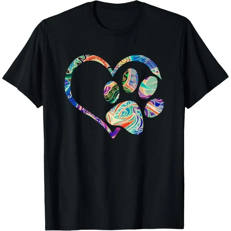 Women's Cotton Short Sleeve Dog Paw Print Tie Dye Rainbow Casual Loose Fit T-Shirt for Daily Wear and Outdoor ActivitiesWomen's Cotton Short Sleeve Dog Paw Print Tie Dye Rainbow Casual Loose Fit T-Shirt for Daily Wear and Outdoor Activities