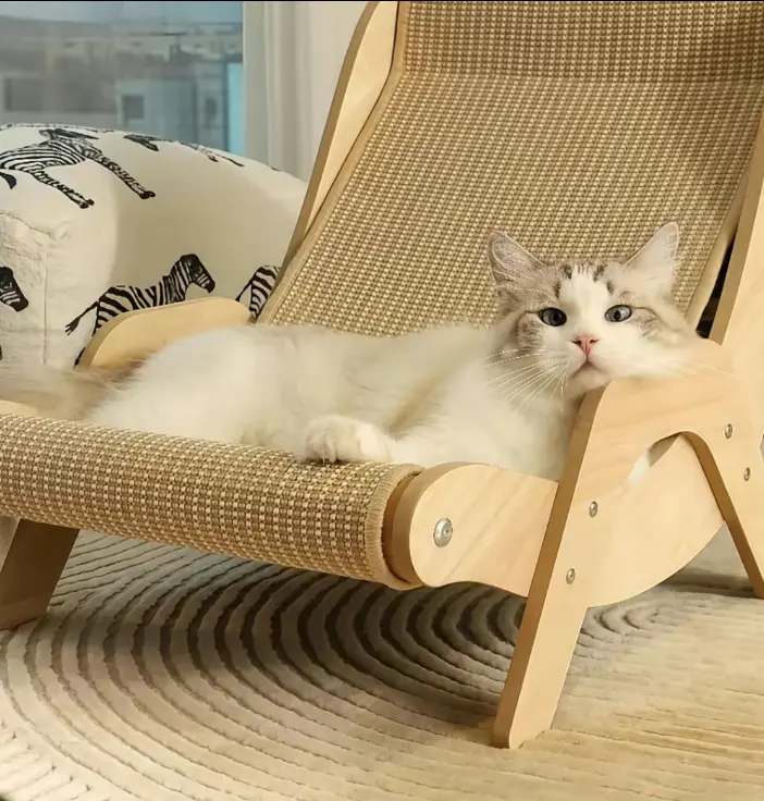 This stylish wooden cat lounge chair is the ultimate 2-in-1 solution for your feline friend, combining a comfortable resting spot with a durable scratching surface. Crafted with premium materials and a modern design, it keeps cats entertained while protecting your furniture