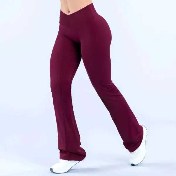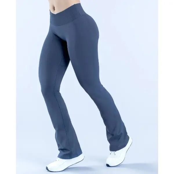 OQQ Women's 2 Piece Flare Leggings High Waist V Shirring Seamless Butt Lifting Tummy Control Wide Leg Gym Casual Workout Yoga Pants