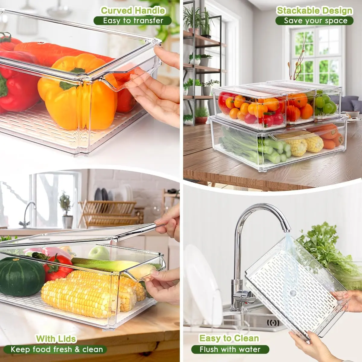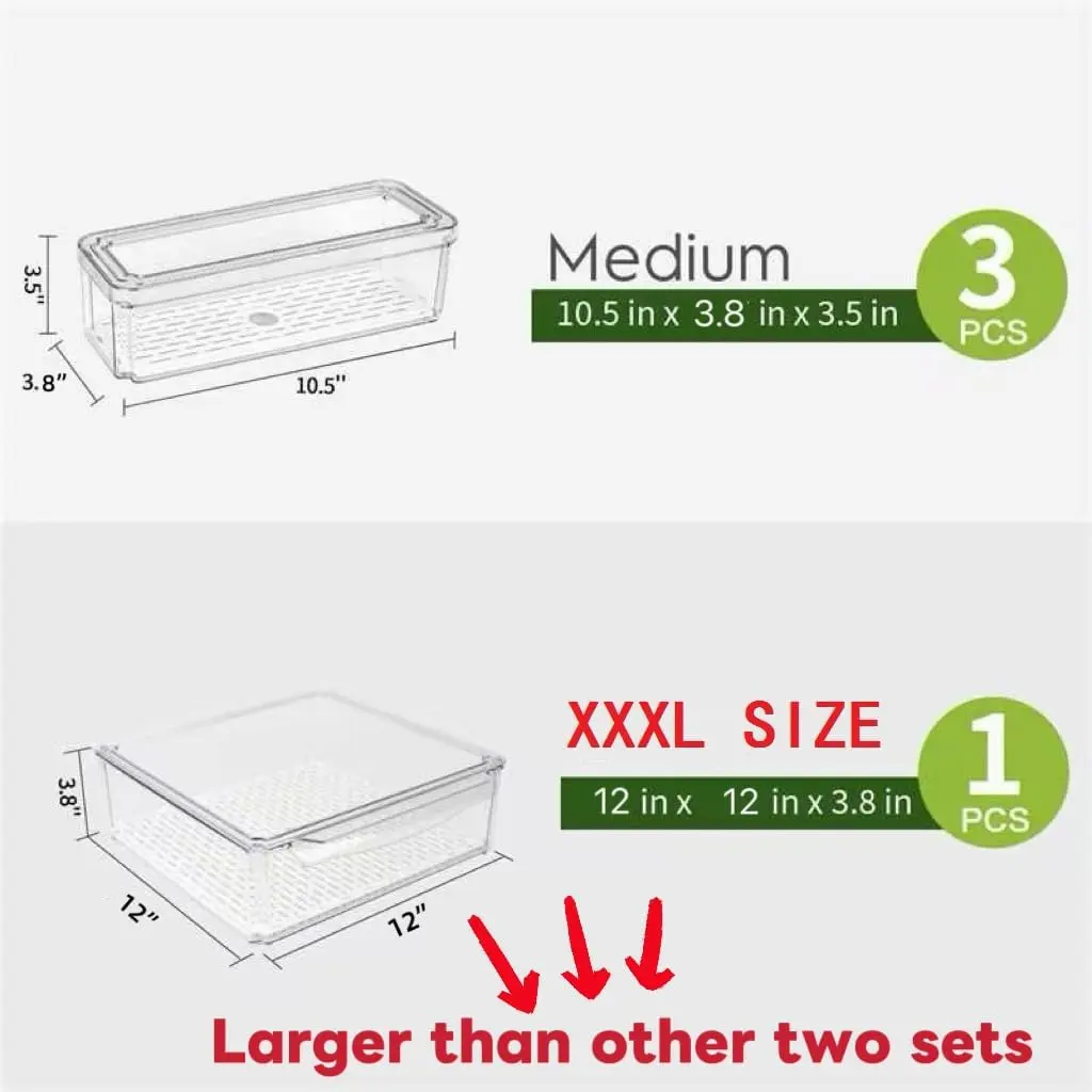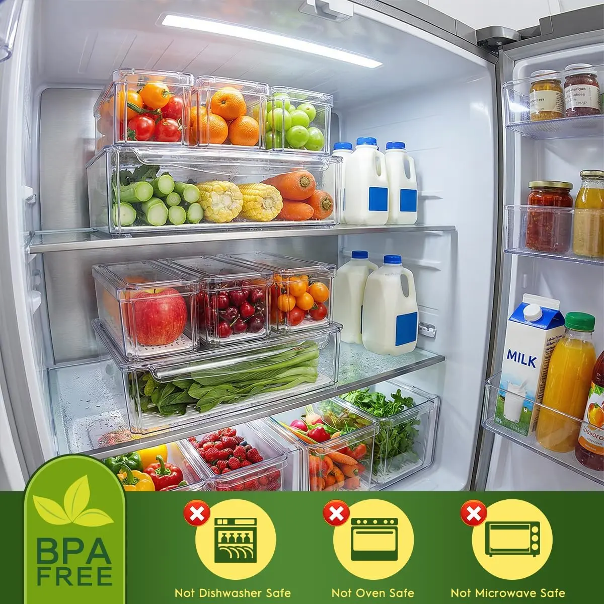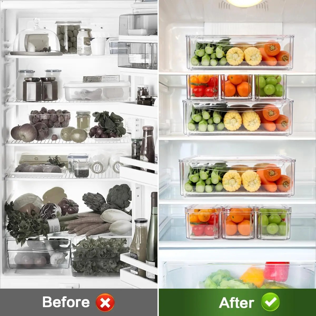 4 pack fridge organizer make your refrigerators neater and save a lot of space. Its super clear materials helps to easily find out the food. Perfect to organize your fridge, kitchen, pantry and drawer. (Each container has a lid.)