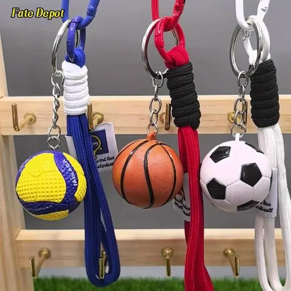 Sports Keychain Set Basketball Volleyball Soccer Ball Charm - Gift for Athletes Christmas Stocking Stuffer Bag Car Key Wallet Pendant