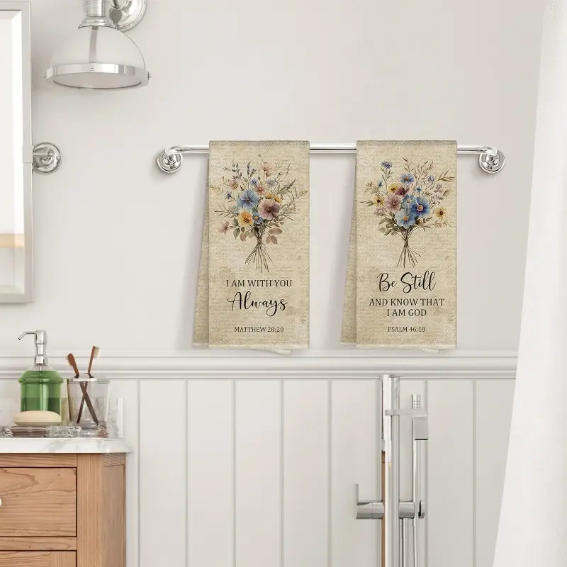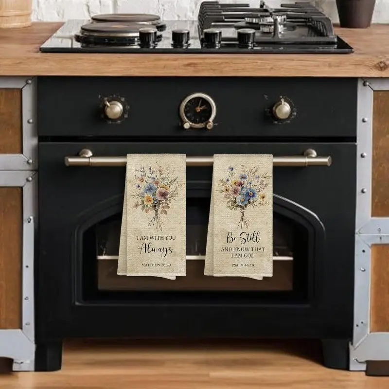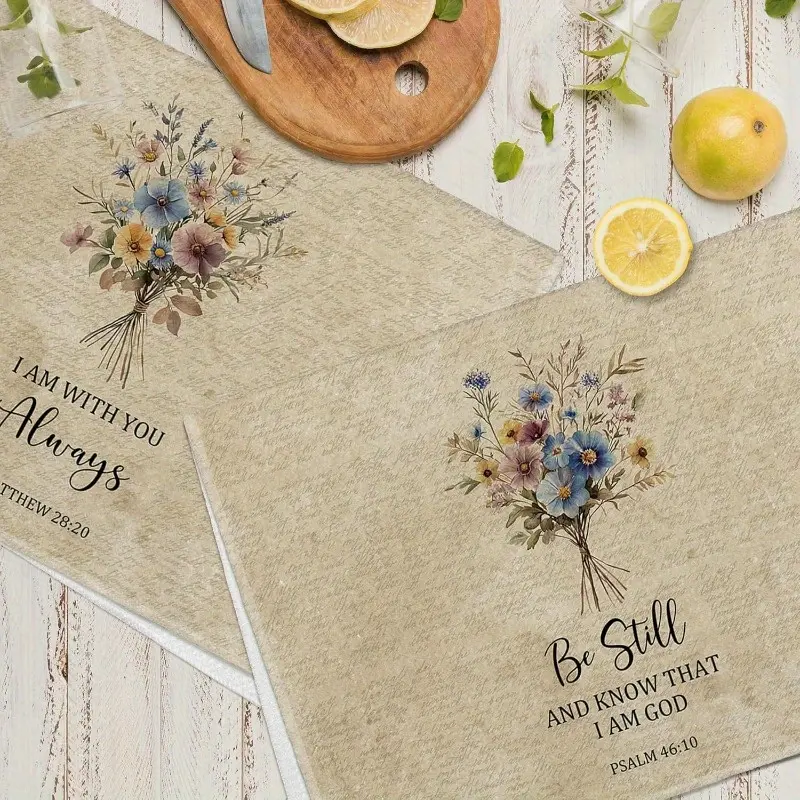 2pcs 23.6x15.7 In Vintage Floral Kitchen Towels Featuring Christian Scripture Uplifting Bible-Themed Decor Suitable For Both Kitchen And Bathroom Reusable Cleaning Cloths Machine-Friendly Dish Towels Seasonal Winter Hand Towels