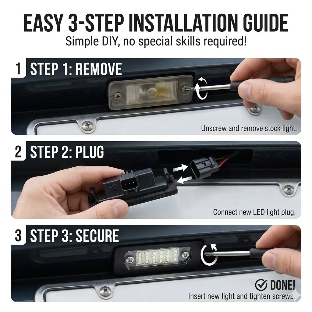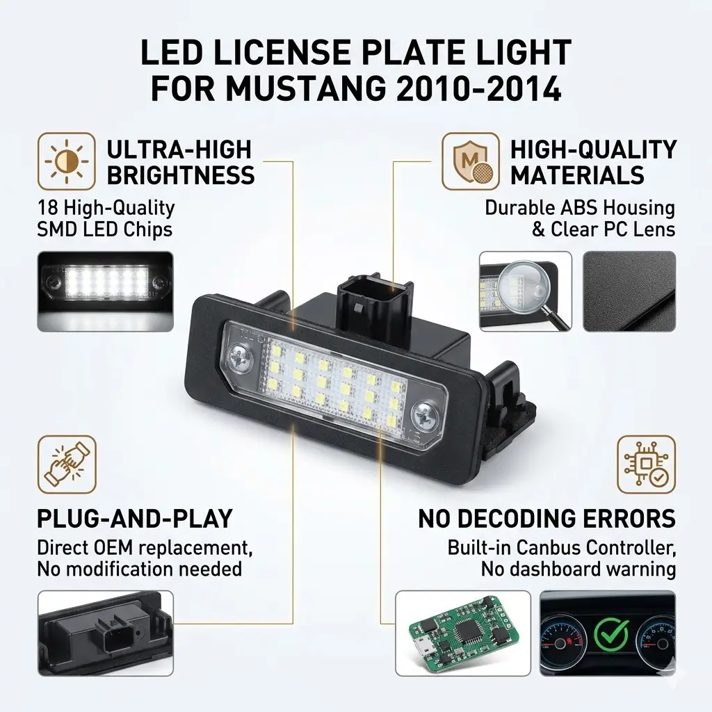 ·ULTRA-BRIGHT ILLUMINATION: Equipped with 18 high-power 2835 SMD LED chips providing 6000K cool white light. 10x brighter than OEM halogen bulbs for improved rear visibility and safety.