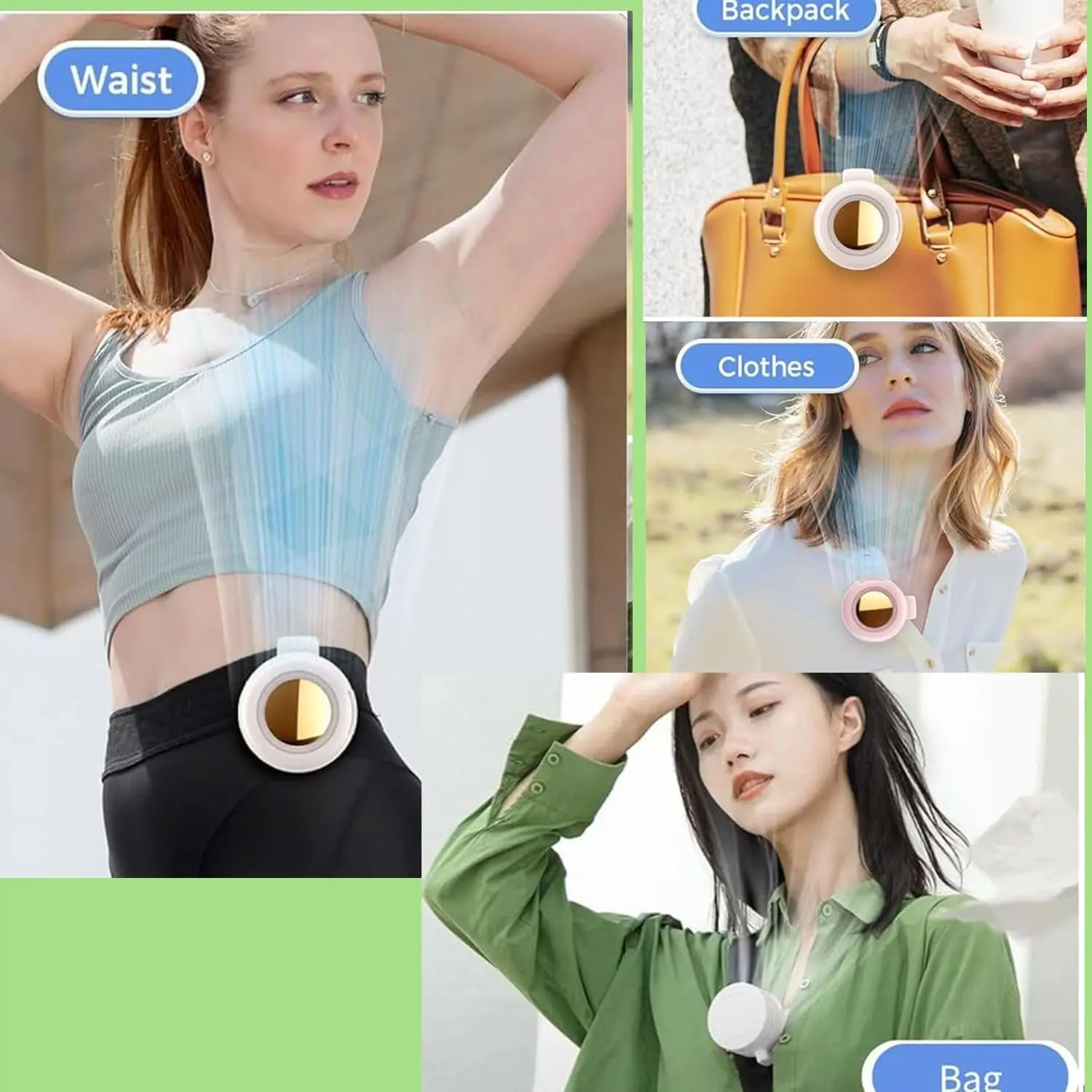 [Easy to use]You can clip your fan around your waist, under your neck, and the wind will blow into your clothes to cool your body