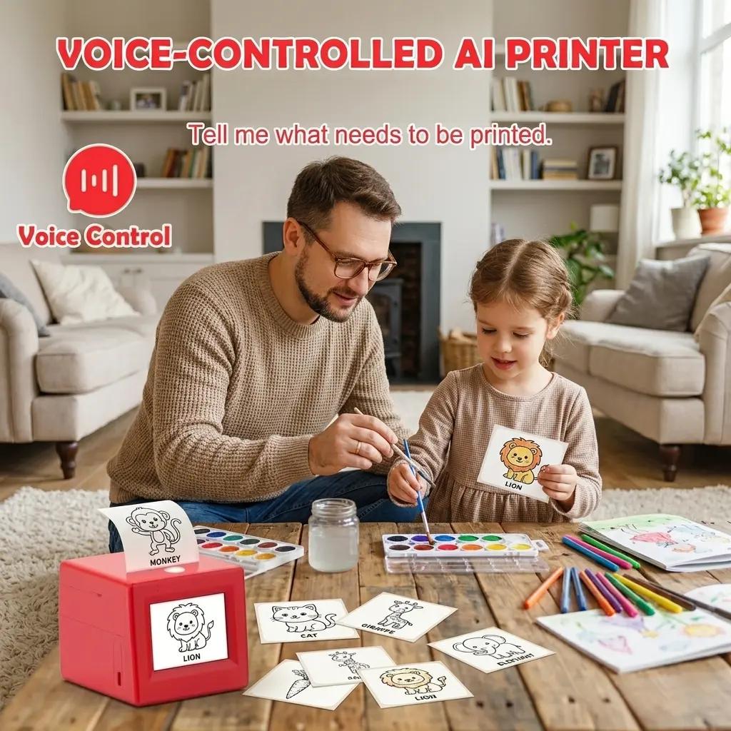 ·【AI Voice-to-Sticker Creation:】AI Voice Sticker Box Printer combines advanced stickerbox AI with voice control for easy operation.Turn your voice into sticker maker machine instantly. Simply speak and let AI generate unique sticker content, making creativity faster, easier, and more fun.Create custom stickers on the go with this fun, easy-to-use gadget for kids.
