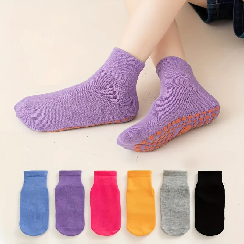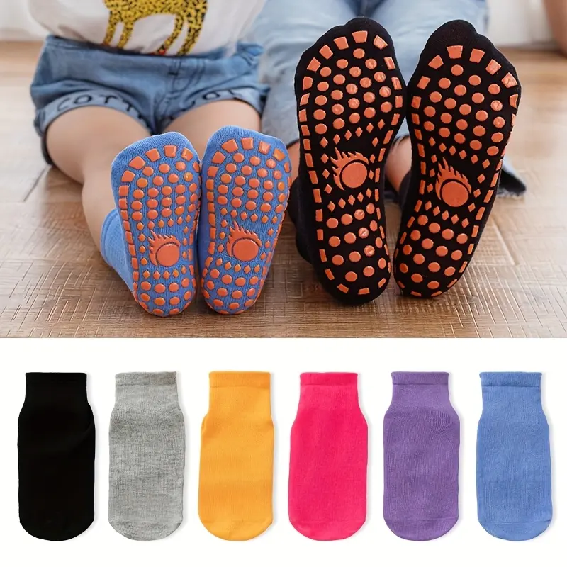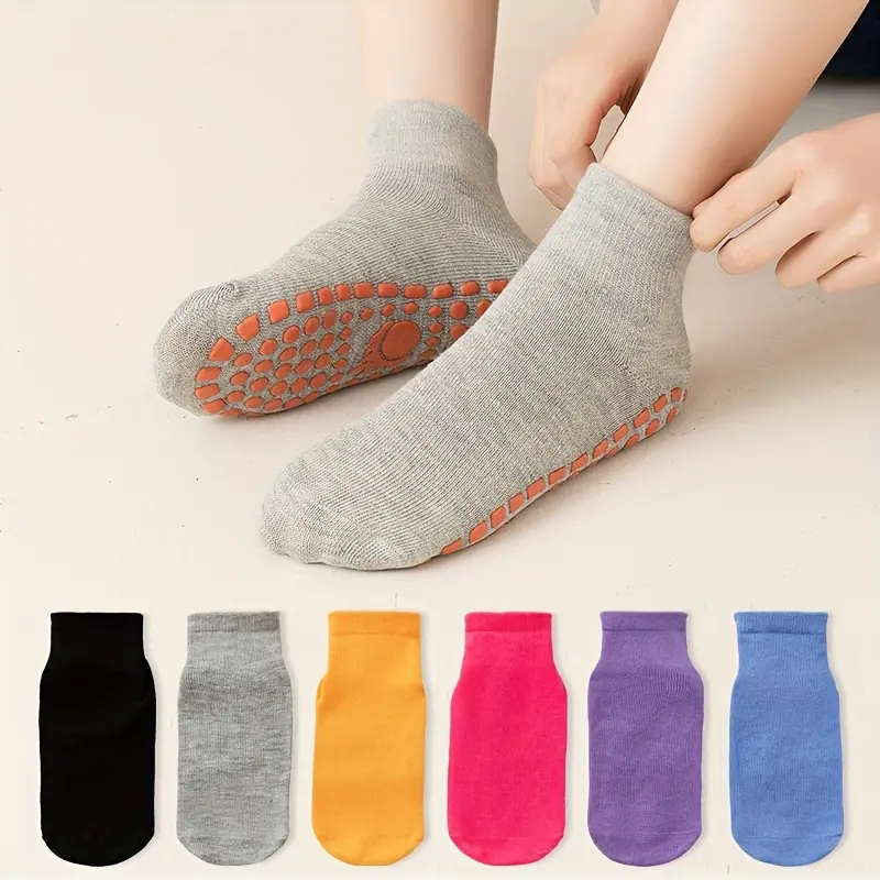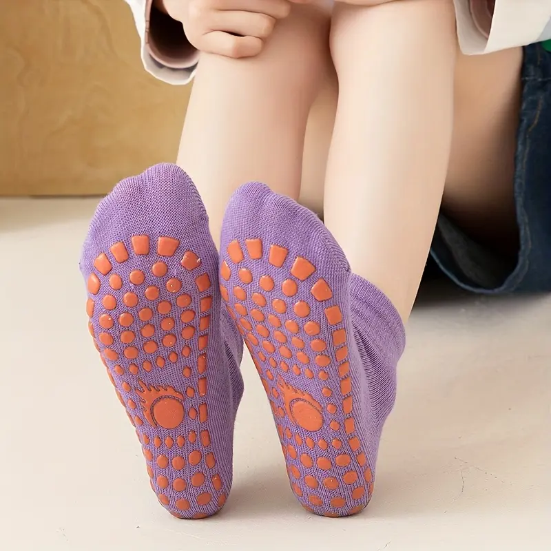 1 Pairs Non-Slip Floor Socks for Kids Adults Thin Mid-Calf Yoga Gym Socks Soft NonSkid Sole Indoor Play Spring Fall