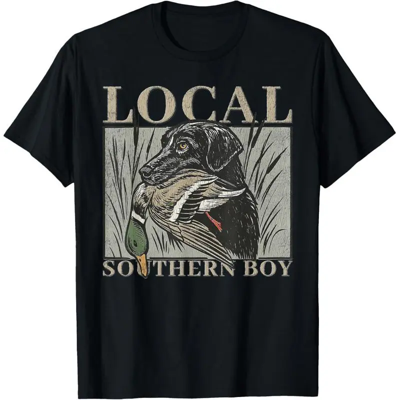100% Cotton Local Southern Boy Duck Hunting Black Lab Outdoor Vintage T-Shirt,Unisex Crewneck T-shirt for Men And Women