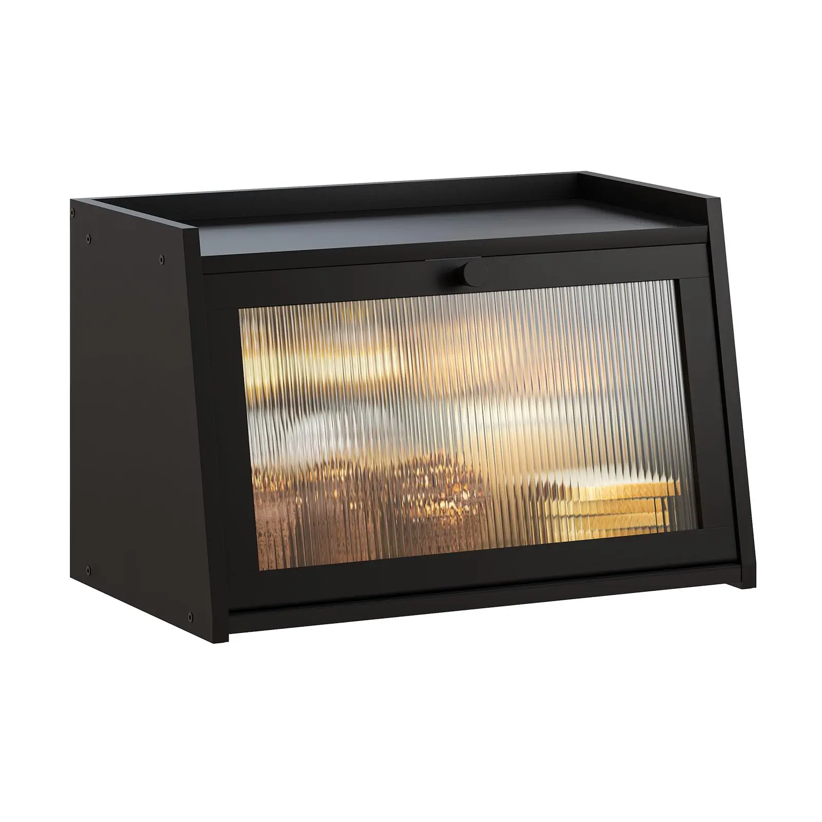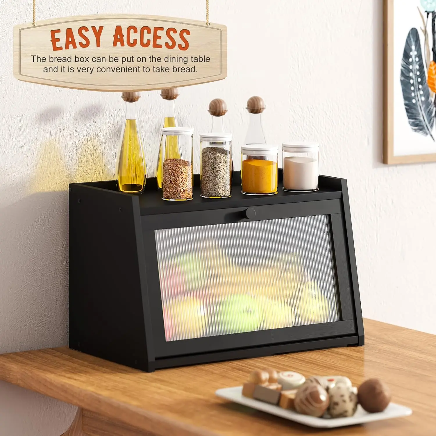 Large Bread Box, Easy Access & Cleaning - Bamboo Bread Box for Kitchen Countertop with Acrylic Door (Black, Medium)