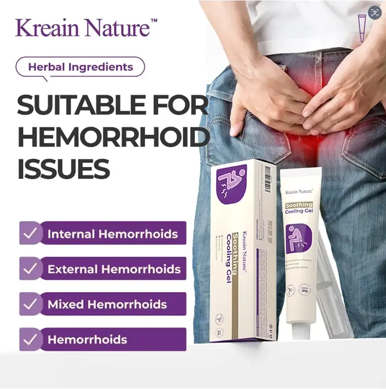 Kreain Nature Soothing Cooling Gel for Anal Skin Care, Hemorrhoid Cream for Itching, Swelling, Burning and Discomfort Relief - 0.7Oz Tube