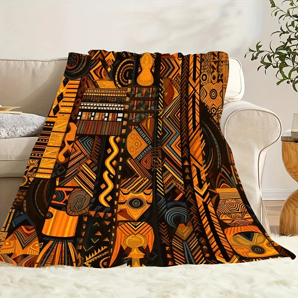 1pc Fashionable Fleece Blanket With Comfortable African Tribal Style Geometric Art Showing Rich Tribal Culture And Abstract Aesthetic Design Theme Pattern Print,Suitable As A Warm Cozy Blanket For Home Sofas, Bedding, Office Napping, Travel, And Camping