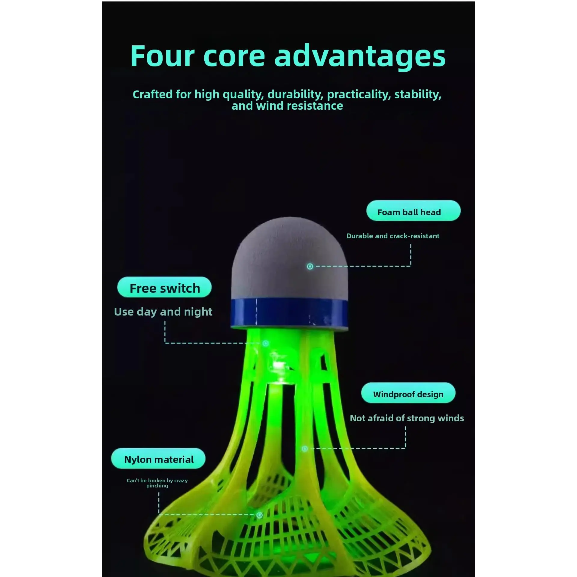 Badminton windproof training ball can't be broken, luminous high elasticity, windproof glow