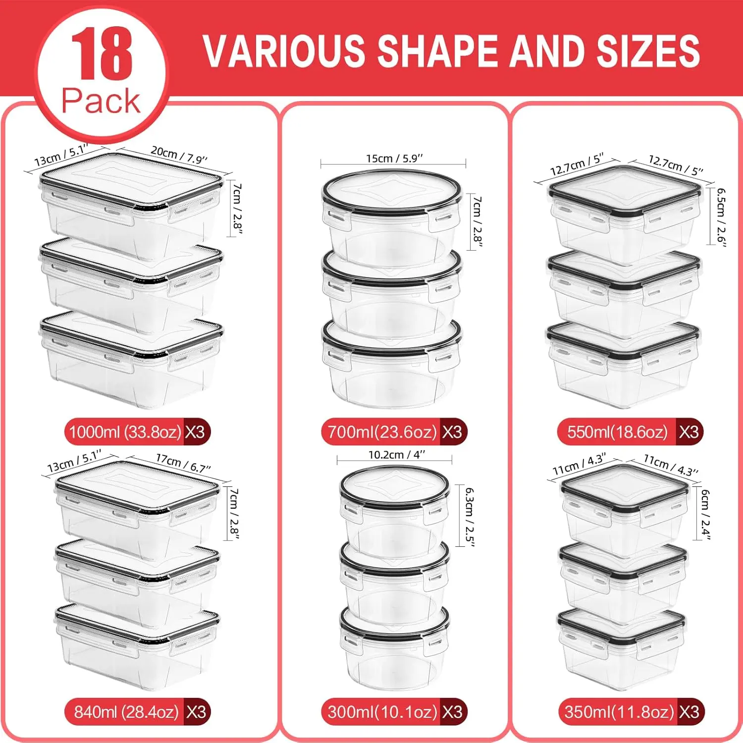 36 Pack Food Storage Containers (18 Airtight Kitchen Storage & 18 Lids), Plastic BPA-Free Meal Prep Container for Pantry Organizers and Storage with Free Labels & Marker