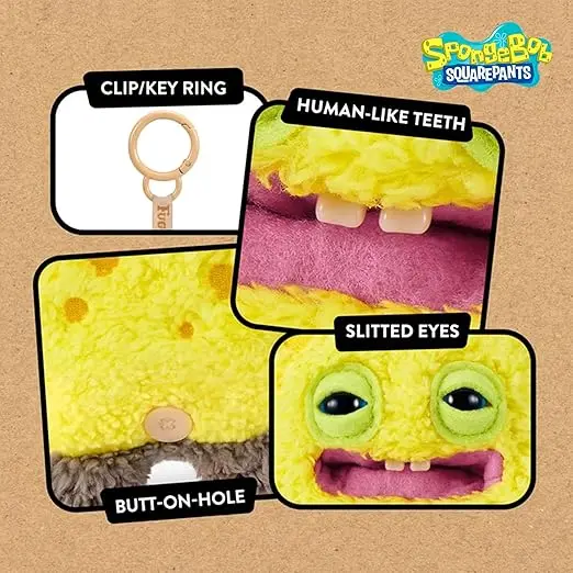 ·OFFICIALLY LICENSED: Fuggler SpongeBob 5-inch plush keyrings combine the beloved SpongeBob SquarePants characters with Fuggler's signature funny ugly monster style