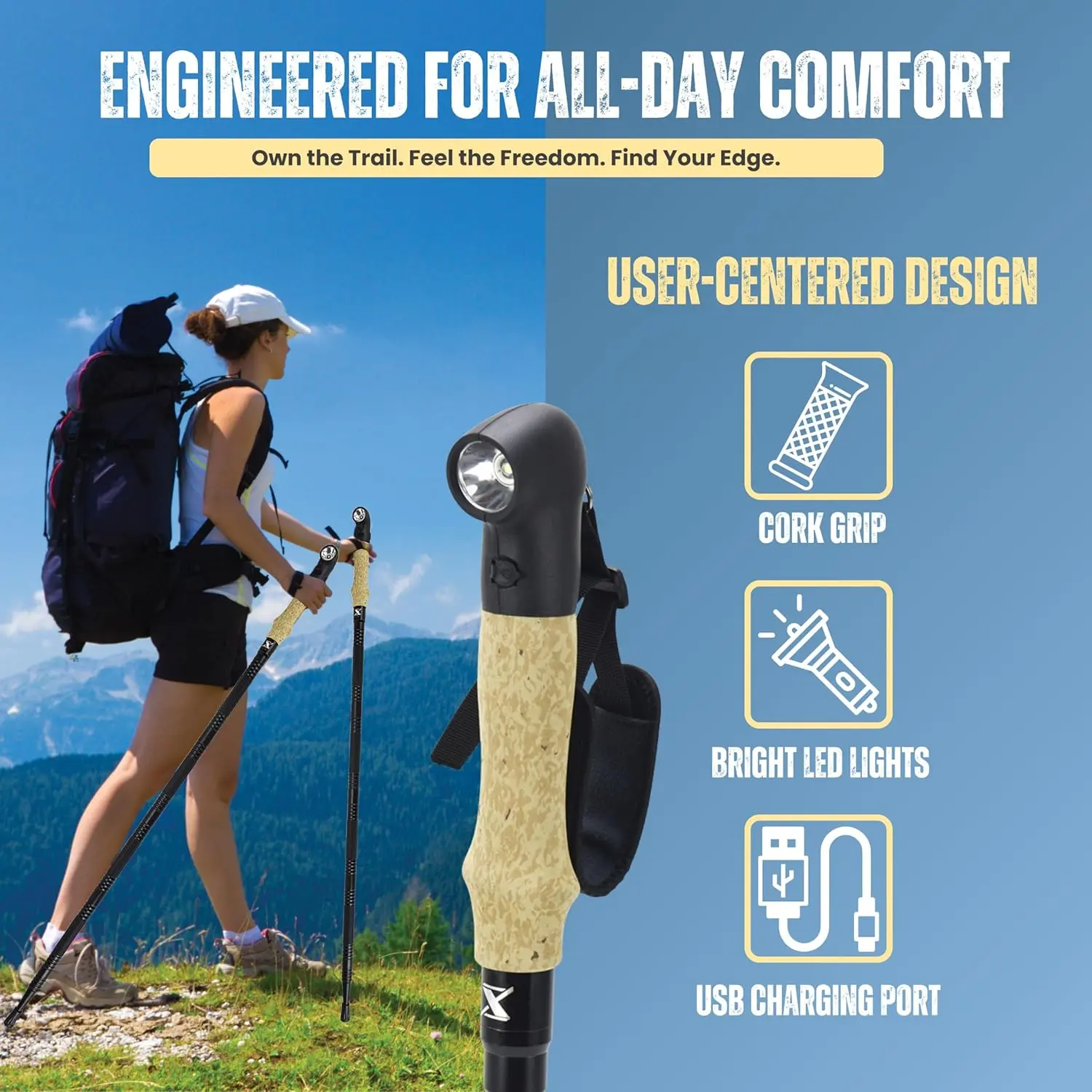 Collapsible Tactical Walking Stick with LED Light, USB Charging, Cork Grip, and Survival Tools – Aircraft Aluminum Trekking Pole for Hiking, Camping, Outdoors & Self Defense