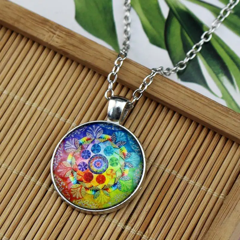 Seal of Seven Archangels Medal Stainless Steel Glass Necklace Seal of Solomon Talisman Necklace Protection Jewelry collar hombre