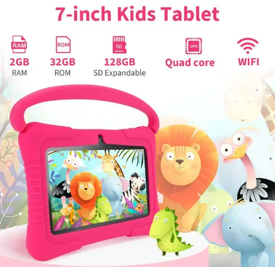 2026 New upgrade Kids Tablet, 7-inch Android 32GB WiFi Tablet for Toddler, Learning Tablet with IWAWA App, Children's Tablet with Silicone Case Graphics Cellphone Anti-drop silicone case, Great Holiday Gift for Teens & Kids