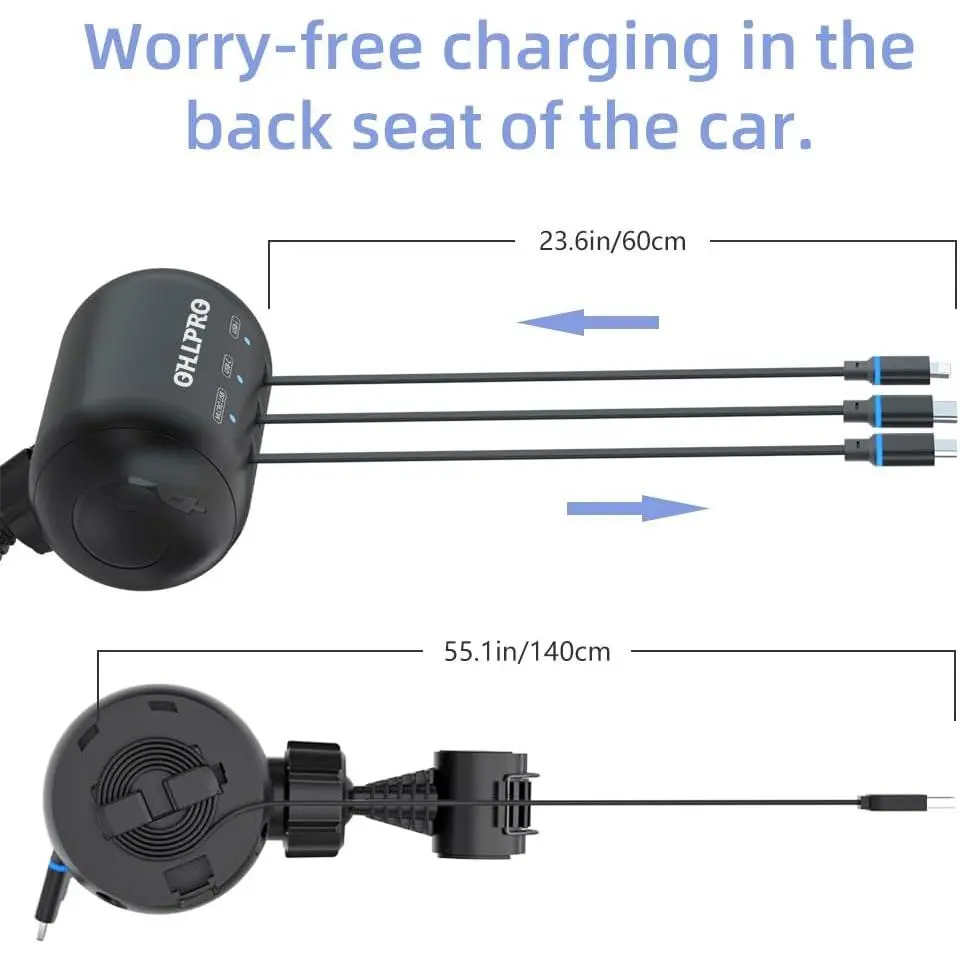 Automatic retractable design, the three charging cables will not be entangled, making your car more tidy