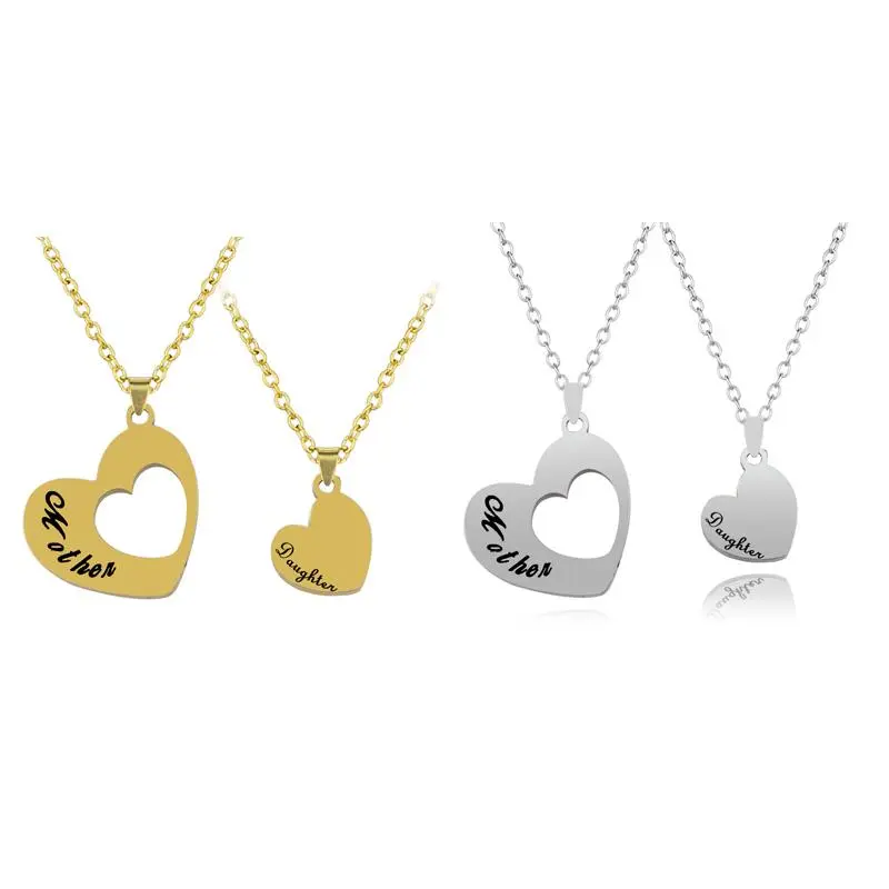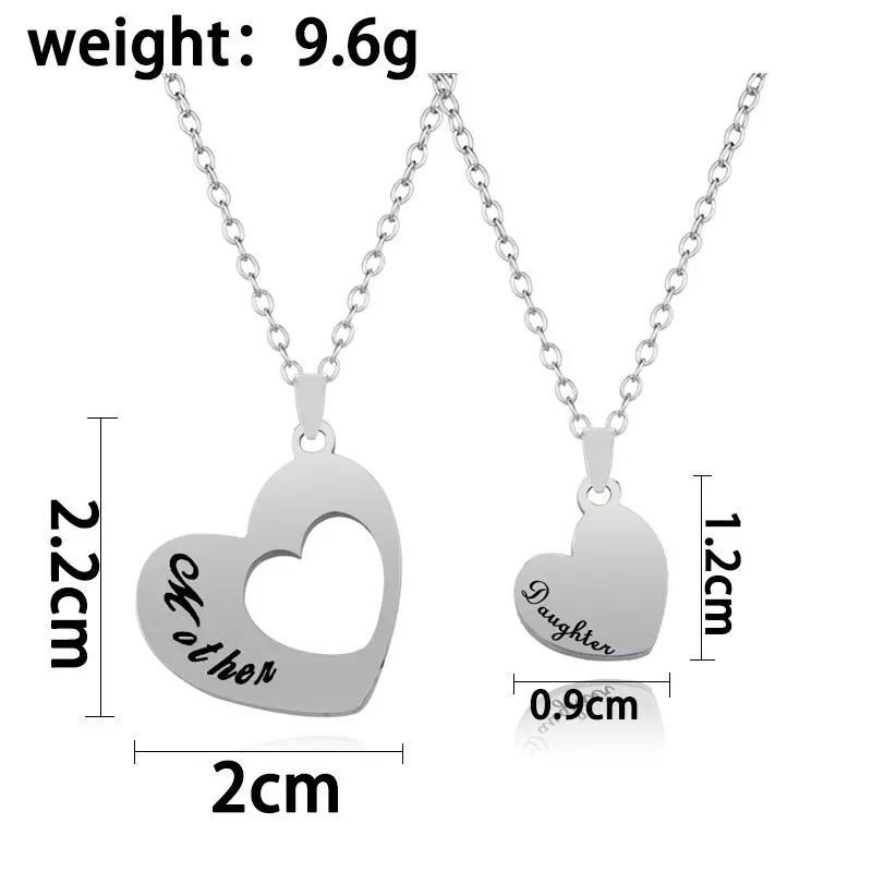2PCS Gift for Mom Hollow Love Pendant Necklace Family Stainless Steel Accessories Mother Day Set Thanksgiving Jewelry 'Daughter'