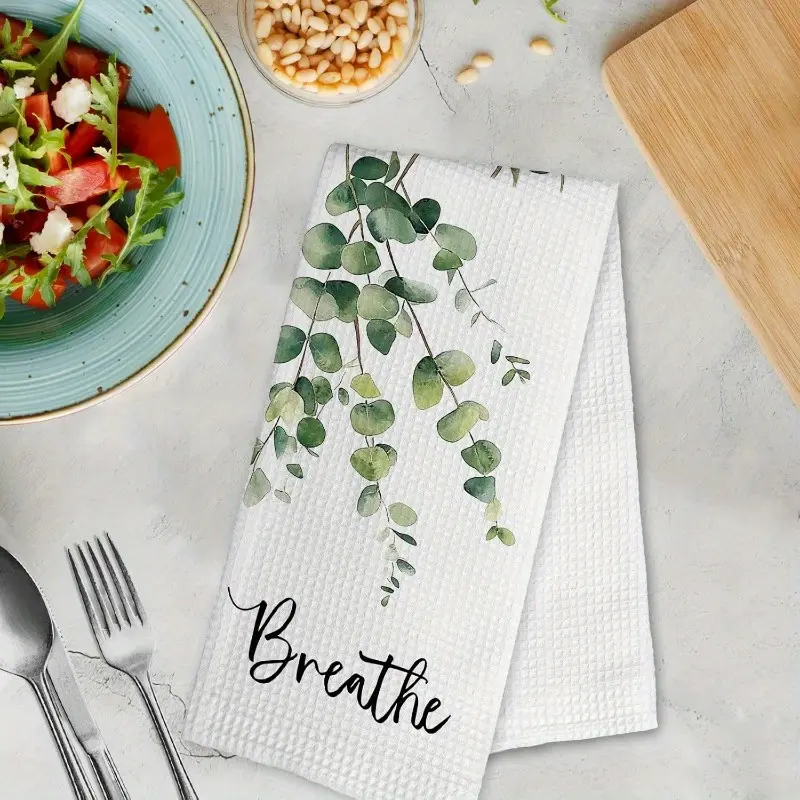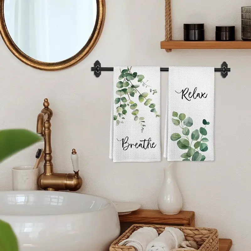 2pcs 23.6x15.7 In Of 2 Eucalyptus Sage Green Hand Towels Perfect For Bathroom Use. These Towels Enhance Sage Green Bathroom Decor And Can Also Serve As Plant-Themed Kitchen Towels. Ideal For Adding A Touch Of Relaxation With Eucalyptus