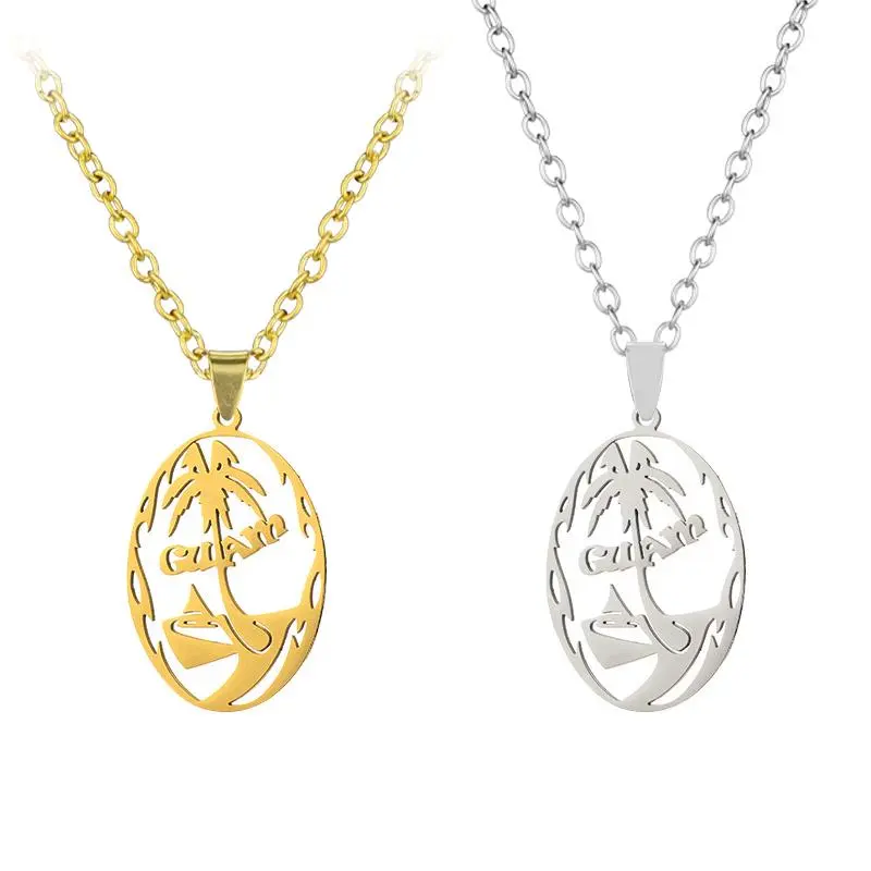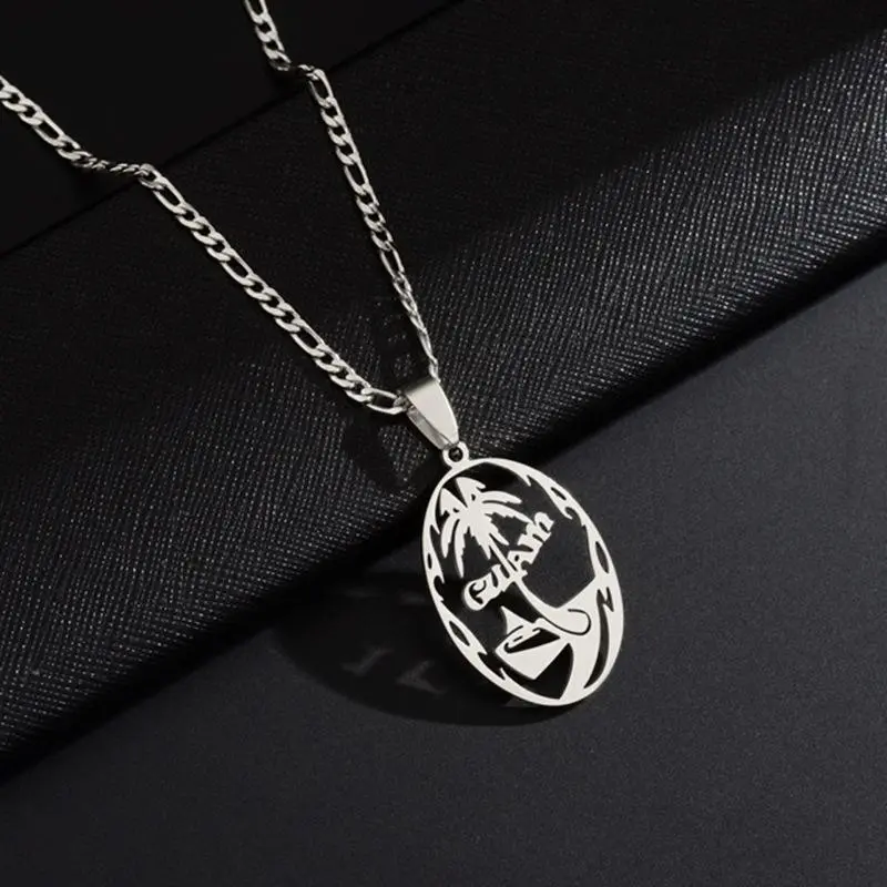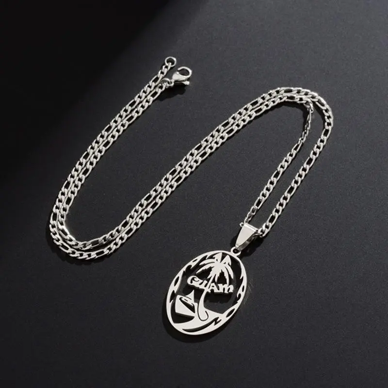 Guam Pendant Chain Necklace for Women Girls Men Gold Color Hawaiian Coconut Tree Stainless Steel Jewelry Kiribat