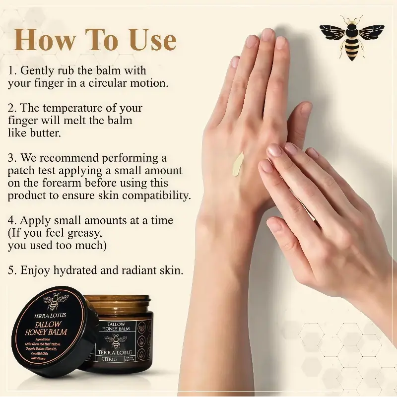 Terra Lotus Tallow Honey Balm Handcrafted All-Natural Moisturizer with Beef Tallow & Raw Honey for Soft Smooth Radiant Skin Care
