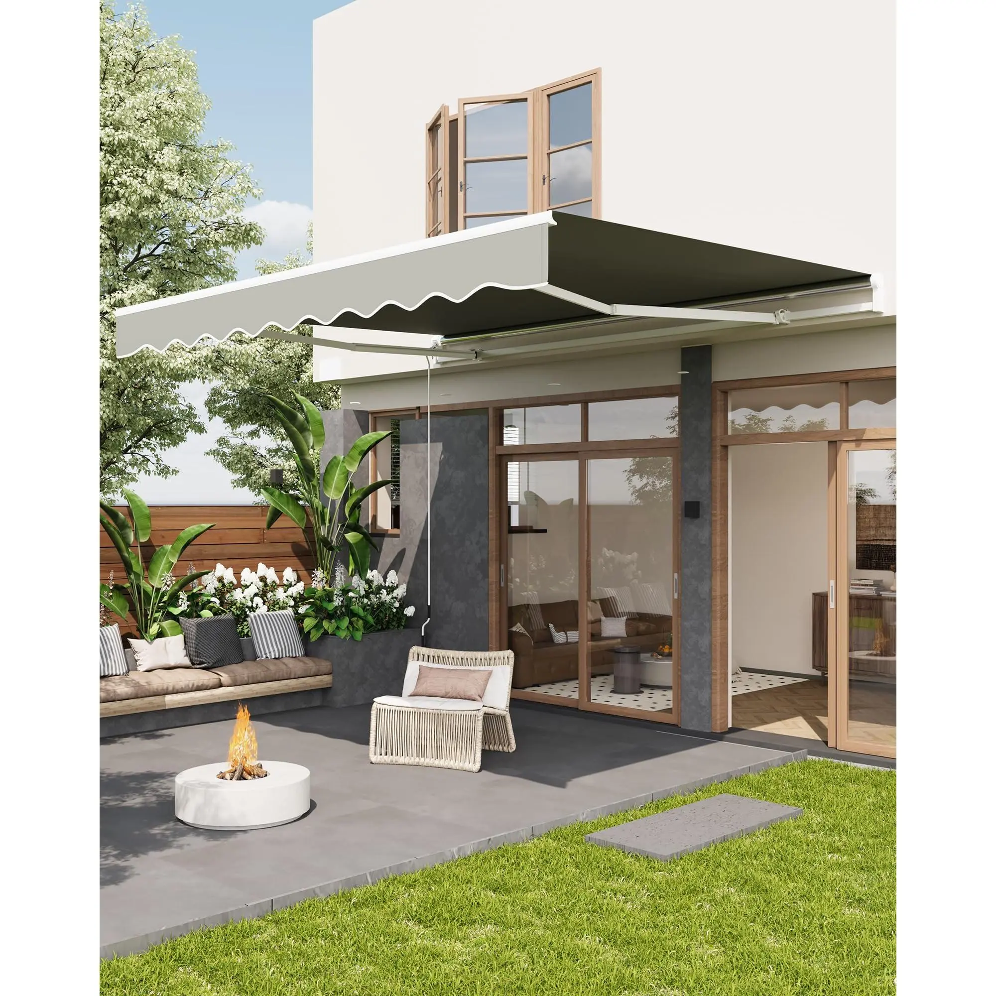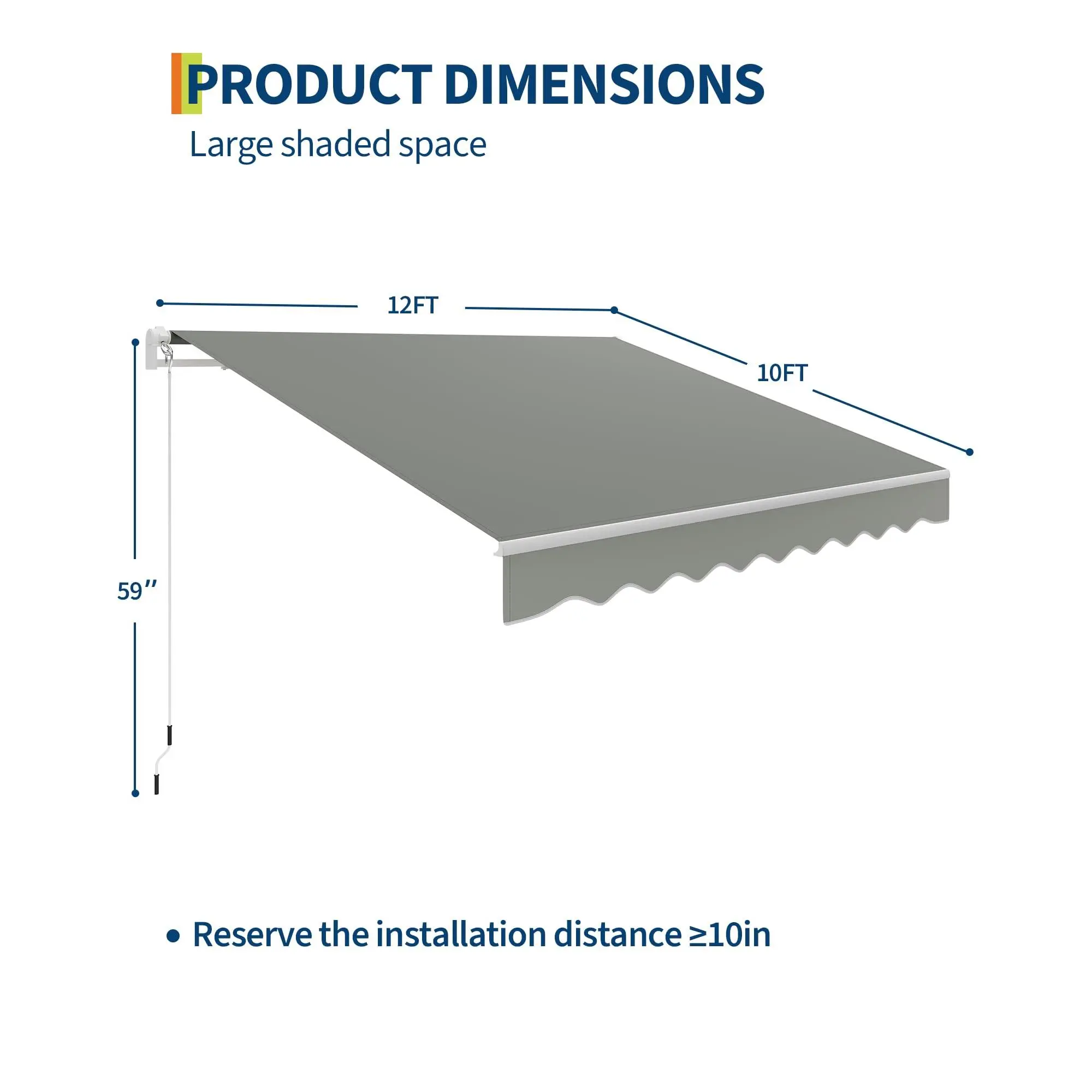 Large Shading Area for Outdoor Comfort: The manual retractable awning provides a generous coverage area of 12x10 ft, effectively shading up to 120 sq.ft. Perfect for creating a cool, protected outdoor living space with retractable awnings for deck, patio, or porch.