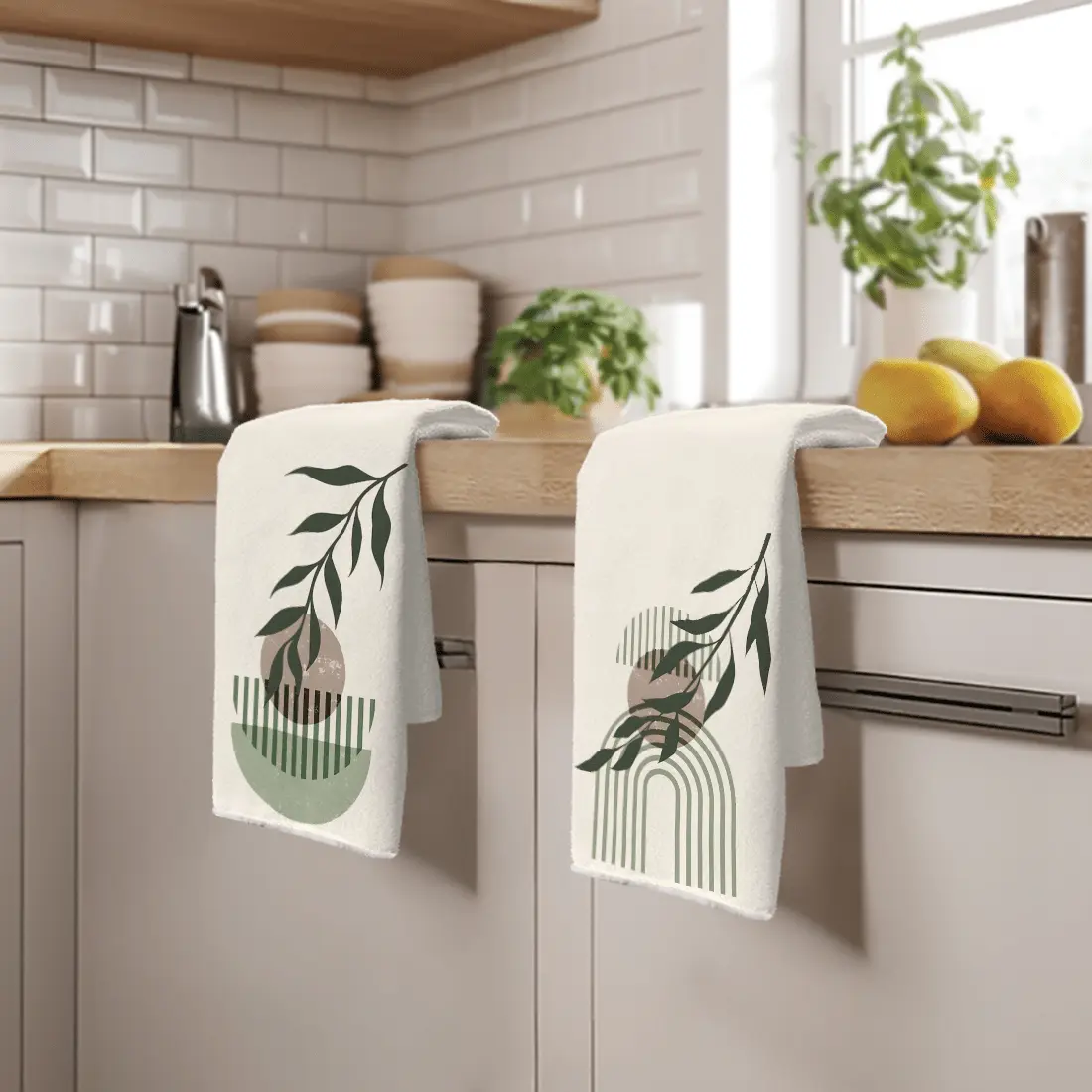 2pcs 23.6x15.7 In Kitchen Towels Green Bohemian Geometric Print Absorbent Soft Microfiber Kitchen Towels Hand Towels And Dish Towels Soft And Durable Suitable For Restaurant Kitchen Bathroom Decor Holiday Gift