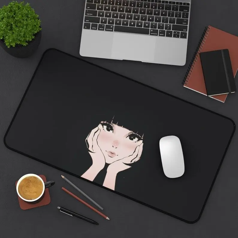 [SALE UP TO 50% + FREE SHIP] Cute Anime Girl Y2K Aesthetic Mousepad Pastel Kawaii Desk Mat Y2K Anime Style Pad Girly Gaming Mouse Pad Aesthetic Decor Mat