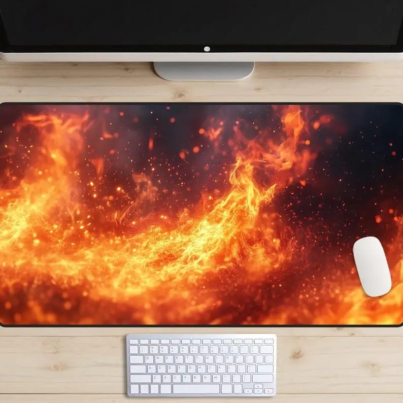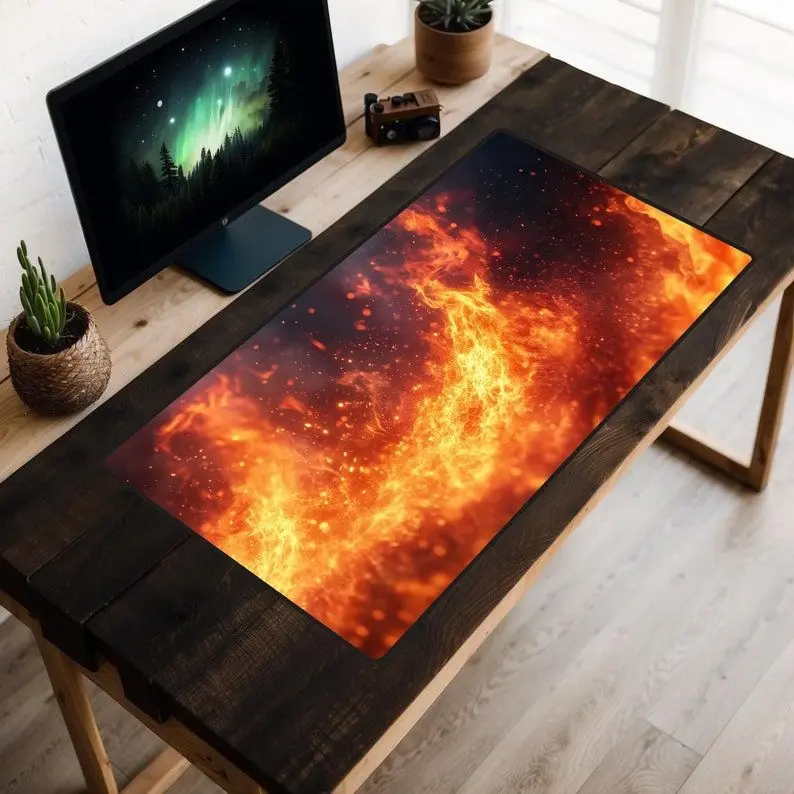 [SALE UP TO 50% + FREE SHIP] Fire Magic Desk Mat, Blazing Inferno Desk Pad, MTG Play Mat, Flames Mousepad, Glowing Embers Desk Topper, Roaring Fire Laptop Mat, Burning