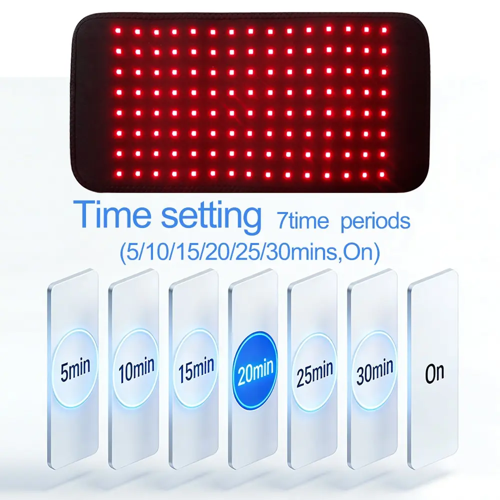 LED THERAPY LIGHT designs with a total of 120 pcs red 660nm and near-infrared 850nm lights, featuring the newest lighting tech that one red lights and two infrared light are combined together in one bulb, making this dual light therapy belt more concentrated and efficient on relieving fatigue and pain.