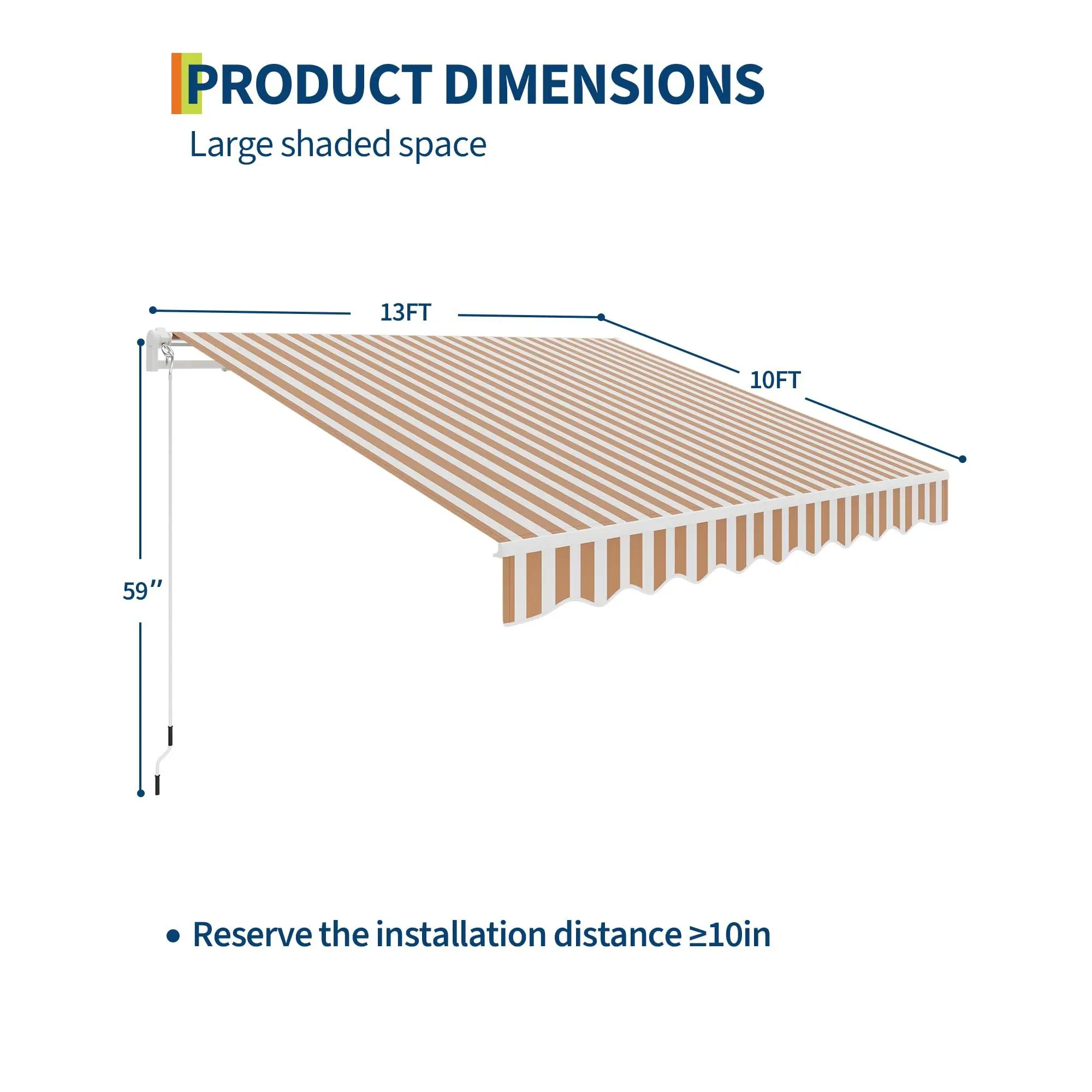 Large Shading Area for Outdoor Comfort: The manual retractable awning provides a generous coverage area of 13x10 ft, effectively shading up to 130 sq.ft. Perfect for creating a cool, protected outdoor living space with retractable awnings for deck, patio, or porch.