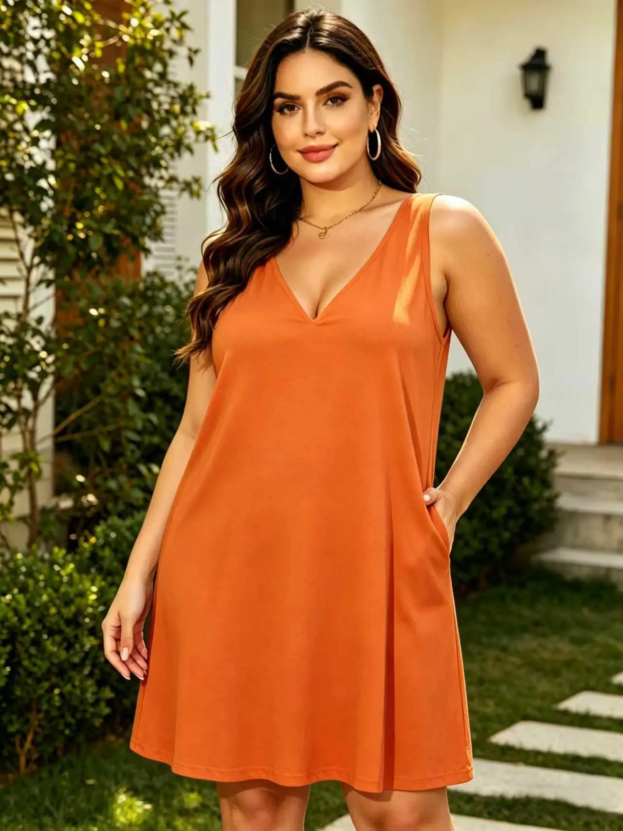 UANEO Women's V-Neck Tank Sundress Summer Sleeveless A-Line Mini Dress Casual Loose Dresses with Pockets