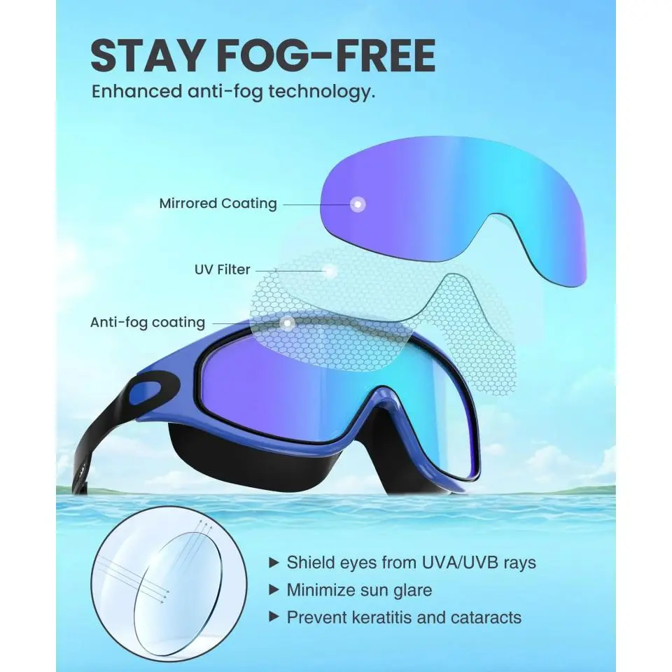 Pro-Grade Swim Goggles for Adults: Premium anti-fog goggles swimming adult with UV400 protection and eak-proof silicone seals.Hydrodynamic design reduces drag while wide-view lenses of swimming goggles men ensure optimal visibility.Swim goggles women adjustable dual straps provide secure fit for all face shapes.Perfect for lap swimming, triathlons and water sports