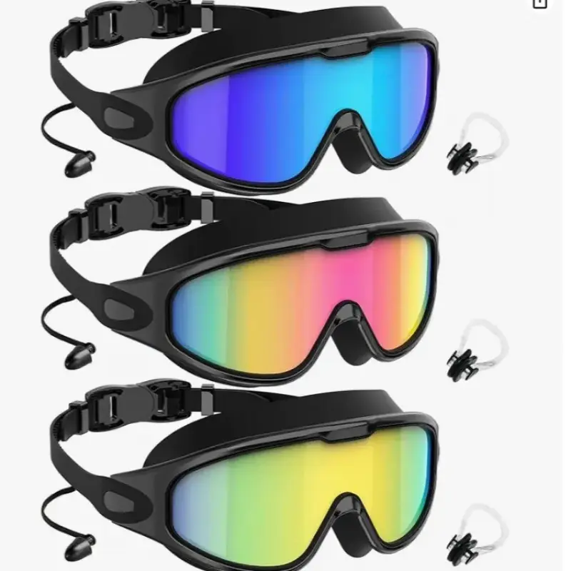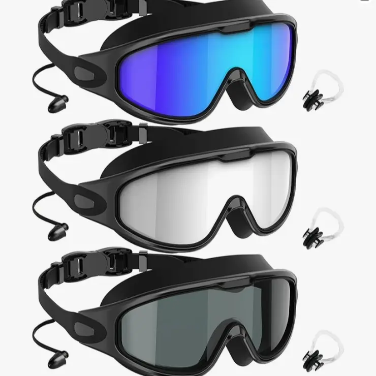 3PCS Goggles Swimming Adult Swim-Goggles,Wide View with UV400 Protection Anti Fog No Leak for Men and Women 3 Pack fit outdoorfun Swim Kit Nose Clips Swim Glasses