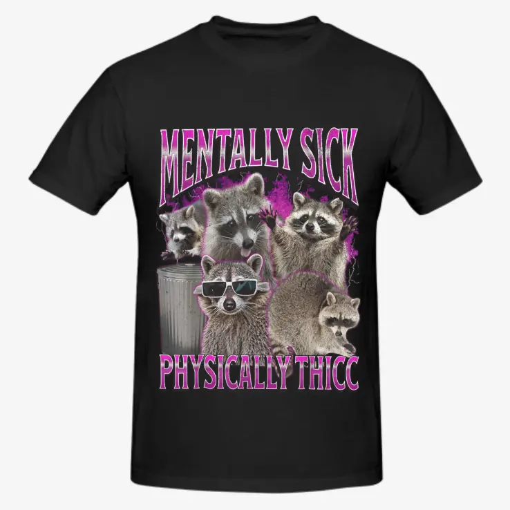 Embrace your love for funny internet memes with this "Physically Thicc Raccoon" graphic tee!Perfect for casual streetwear, this 90s-inspired bootleg design combines humor, nostalgia, and comfort.Ideal for anyone who enjoys viral animal memes or wants a bold, playful look.
