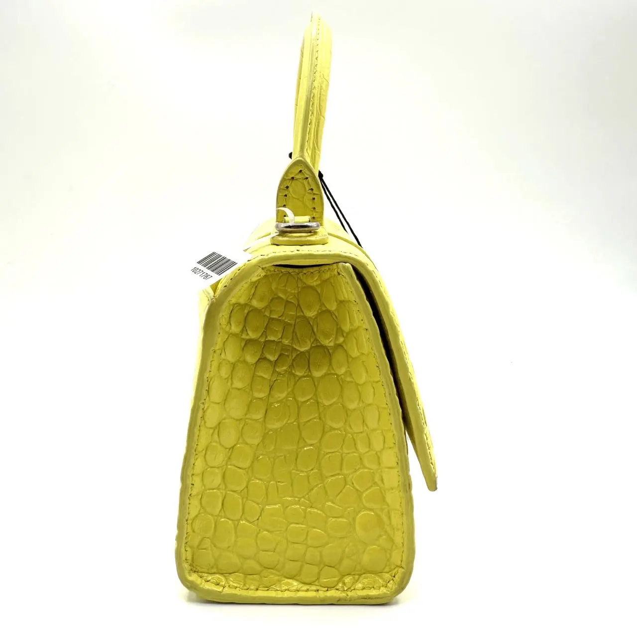 The bag's design is both versatile and practical. It complements a wide range of outfits, from casual to formal. The light yellow shade adds a touch of brightness to your ensemble. Choose the CALUX- Hourglass Top Handle Bag for a stylish and functional accessory.