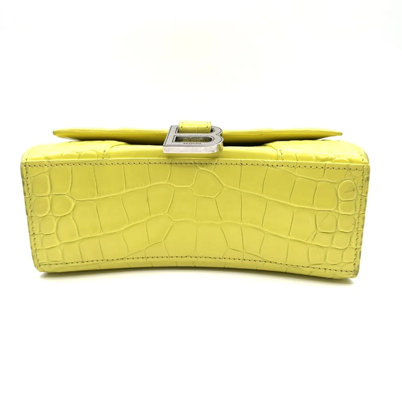 Pre-owned Balenciaga Leather Tote Bags CALUX Hourglass Top Handle Bag Light Yellow SHW