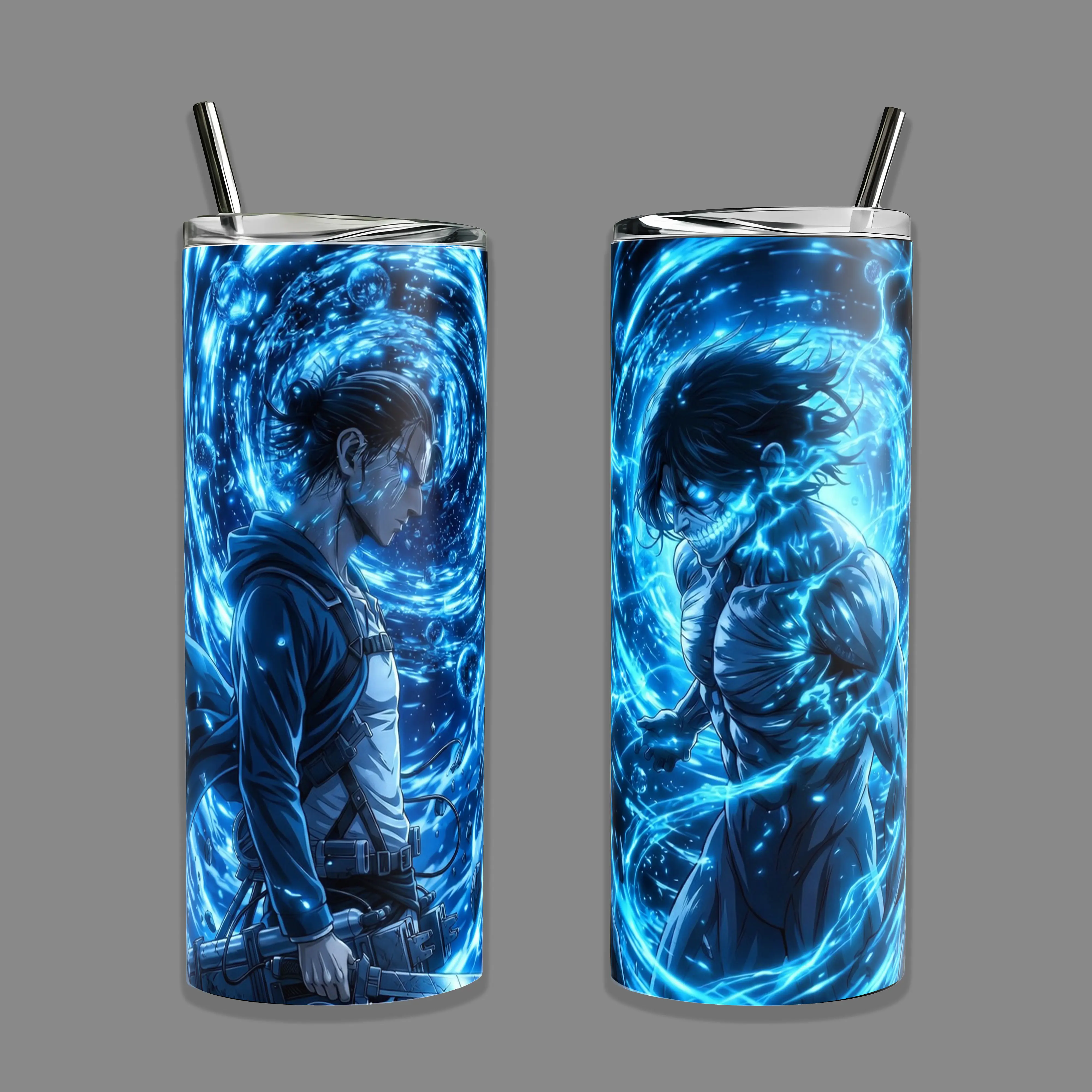 Blue Lightning Anime Titan 20oz 40oz Tumbler With Handle, Manga Energy Warrior Travel Mug, Gift For Anime Fans